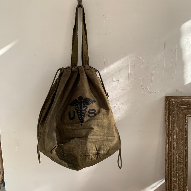 N,P,Eの2025年秋冬コレクションの目玉となるリプロダクトバッグは ビンテージのEFFECTS BAGを解体し、スキャンニング後に拡大・縮小アレンジでサイズ展開を構築。 そのグラフィックをシーチングにインクジェットプリントし、軍物の独特な雰囲気をそのままに再現。 身頃部分は2枚仕立ての薄手シーチングで強度を確保し、軽さと丈夫さを両立させました。 オリジナルの軍物の魅力を現代的にアレンジし、どこか懐かしくも新しく新鮮な印象を与えるバッグです。 縦41.2cm 横55cm 綿100%