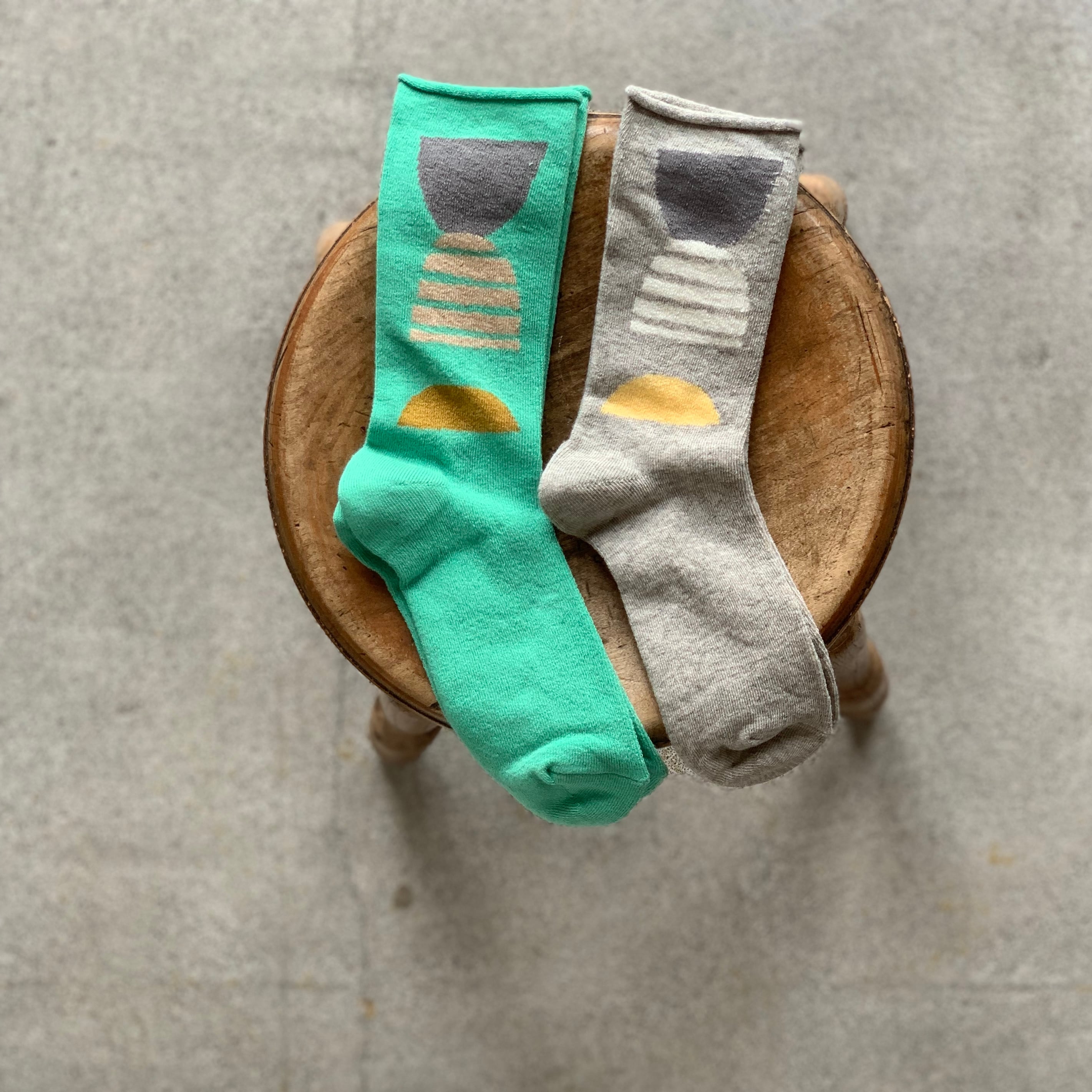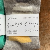 “昔ながらのゆっくり編み”で、素材も手間も時間もたっぷりかけてつくる「ふんわりくつした」は、ゴムが入っていないのでしめつけ感がなく、ふんわりとした履き心地です。