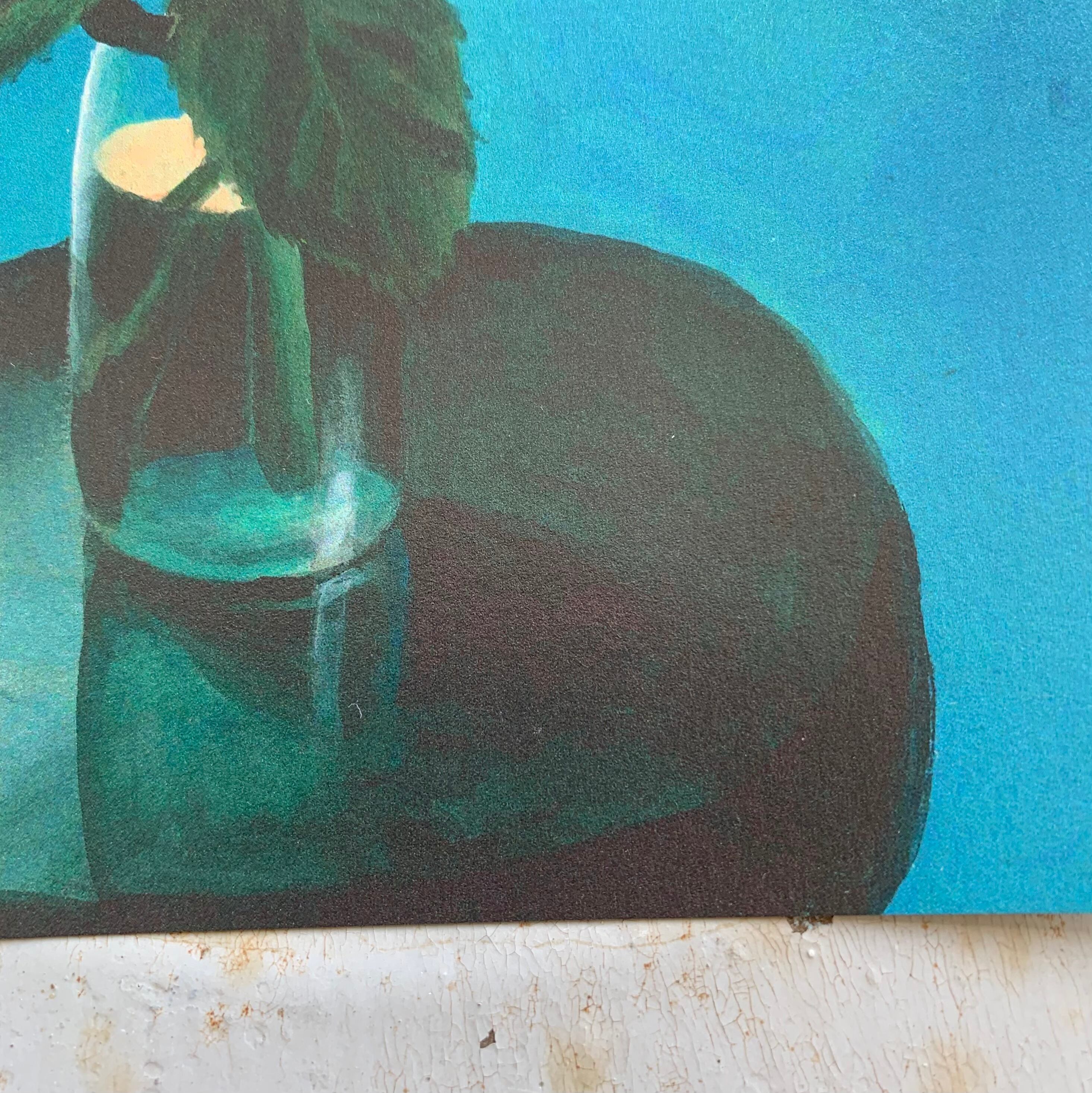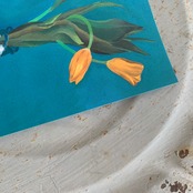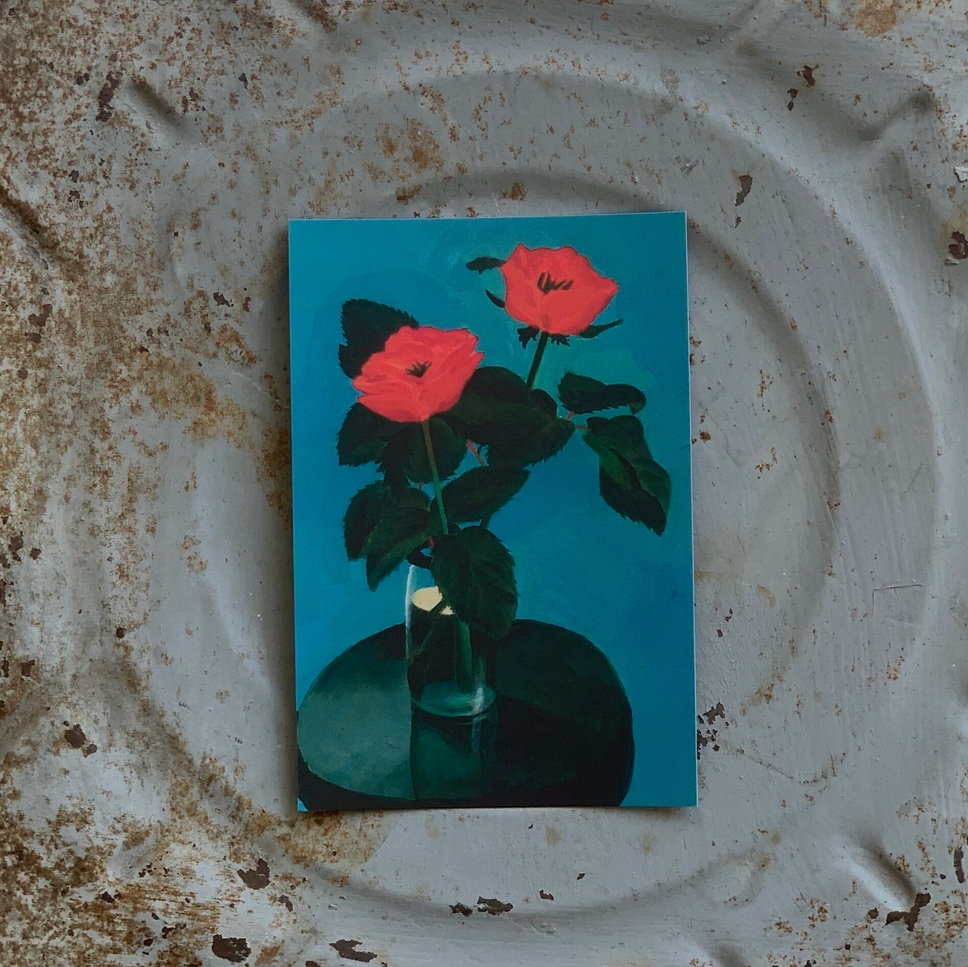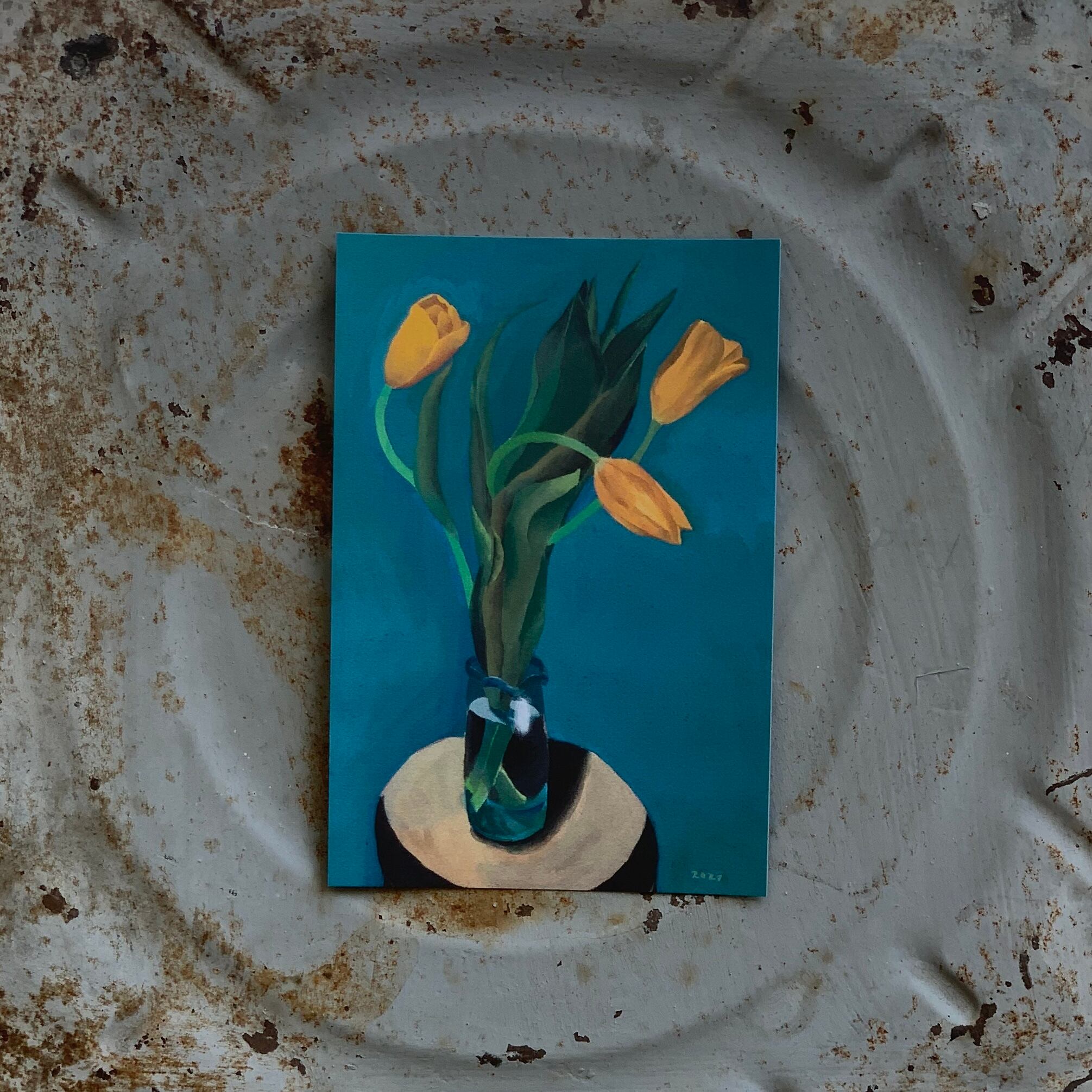 描かれているのは、野草でも鉢植えの花でもなく、花屋で買った切り花。生きているが、生きていく花ではない。
