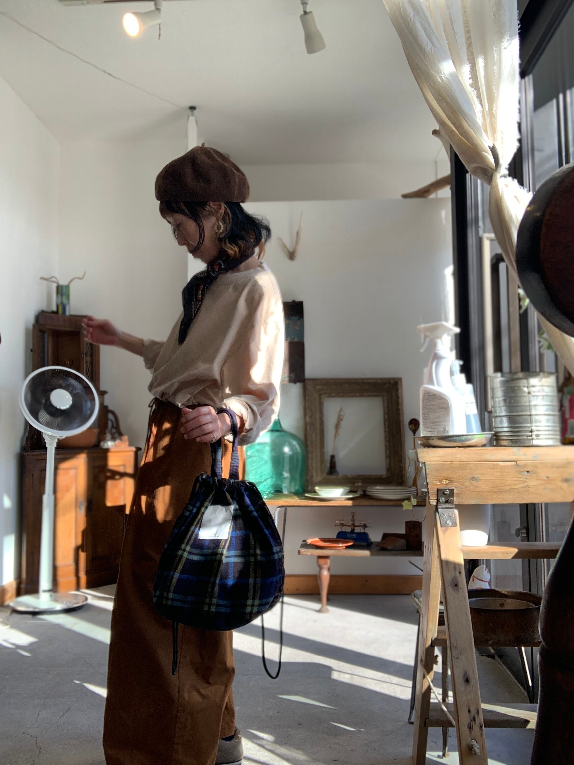 柔らかなフランネルチェック生地を贅沢に使用したバッグは、季節感溢れる温もりを感じさせます。