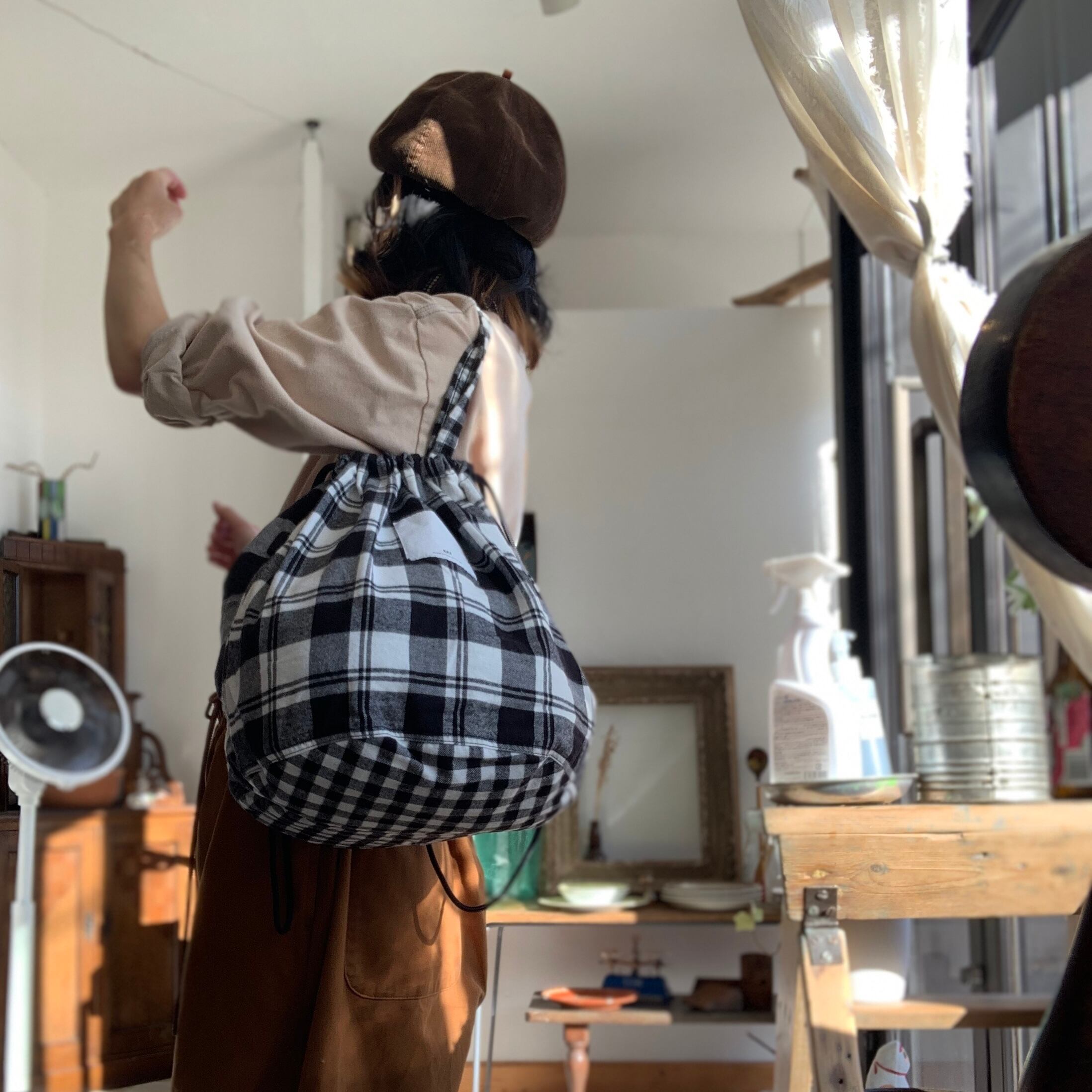 柔らかなフランネルチェック生地を贅沢に使用したバッグは、季節感溢れる温もりを感じさせます。