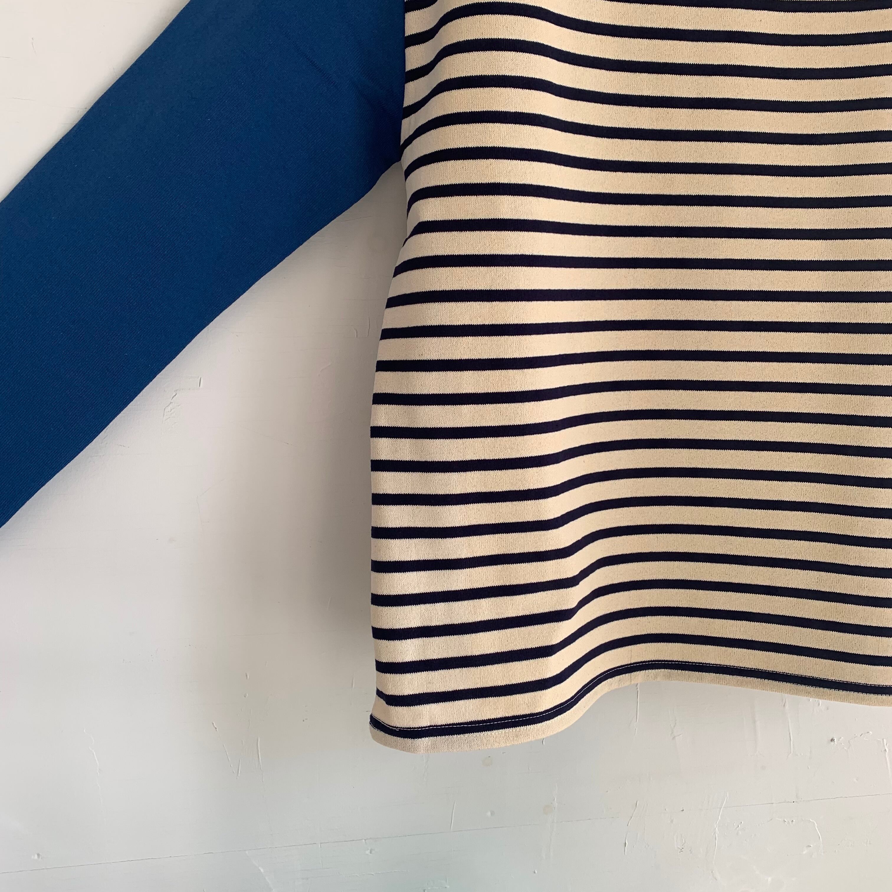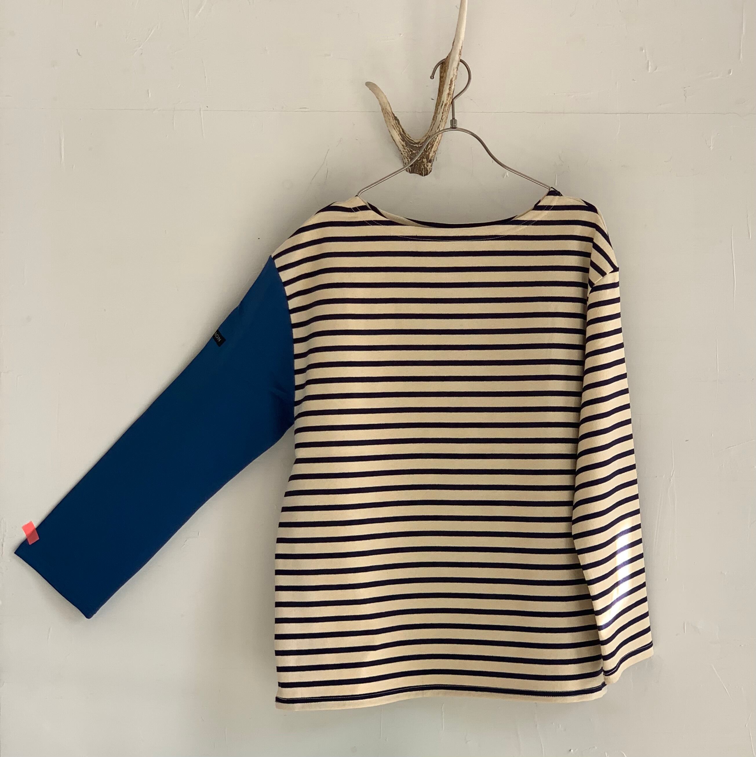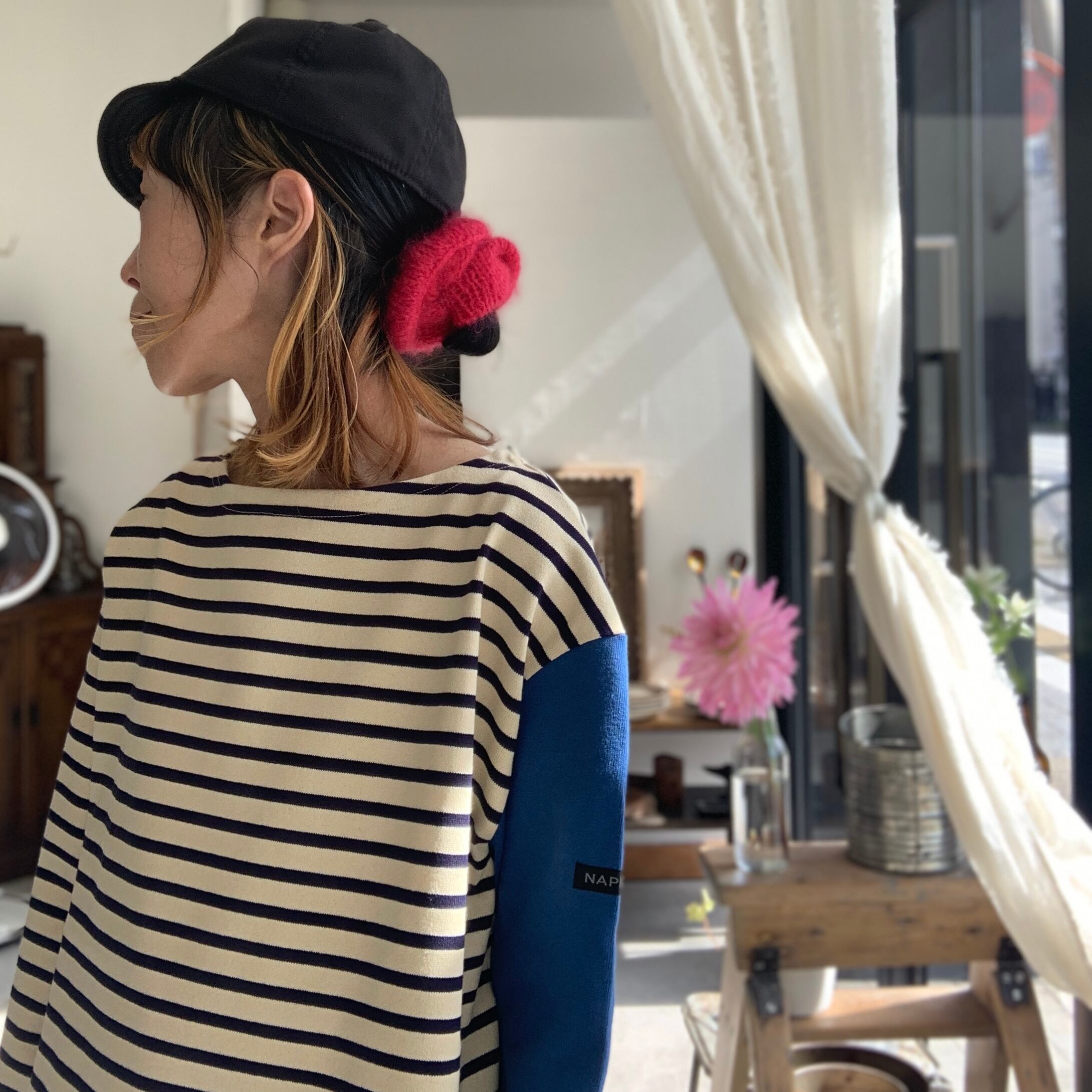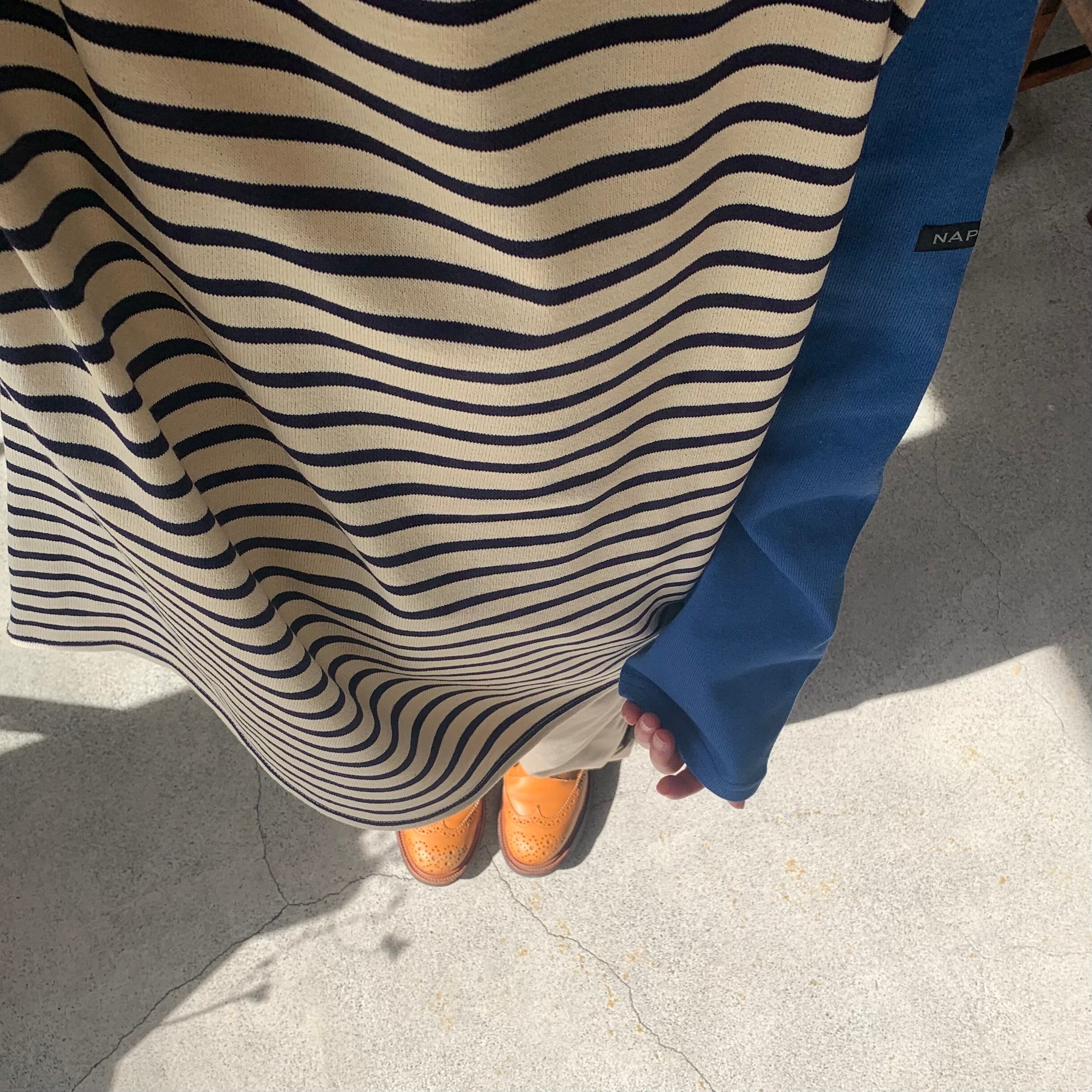 ゆったりと着用できるサイズ感で、腕周りに配置したNAPRONのネームタグがポイントです。