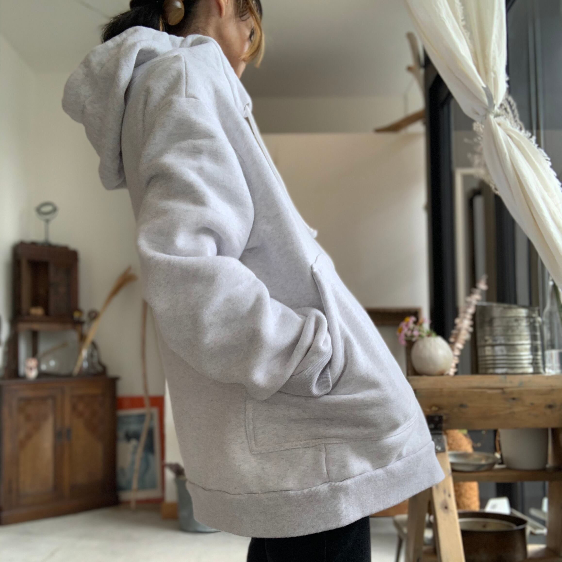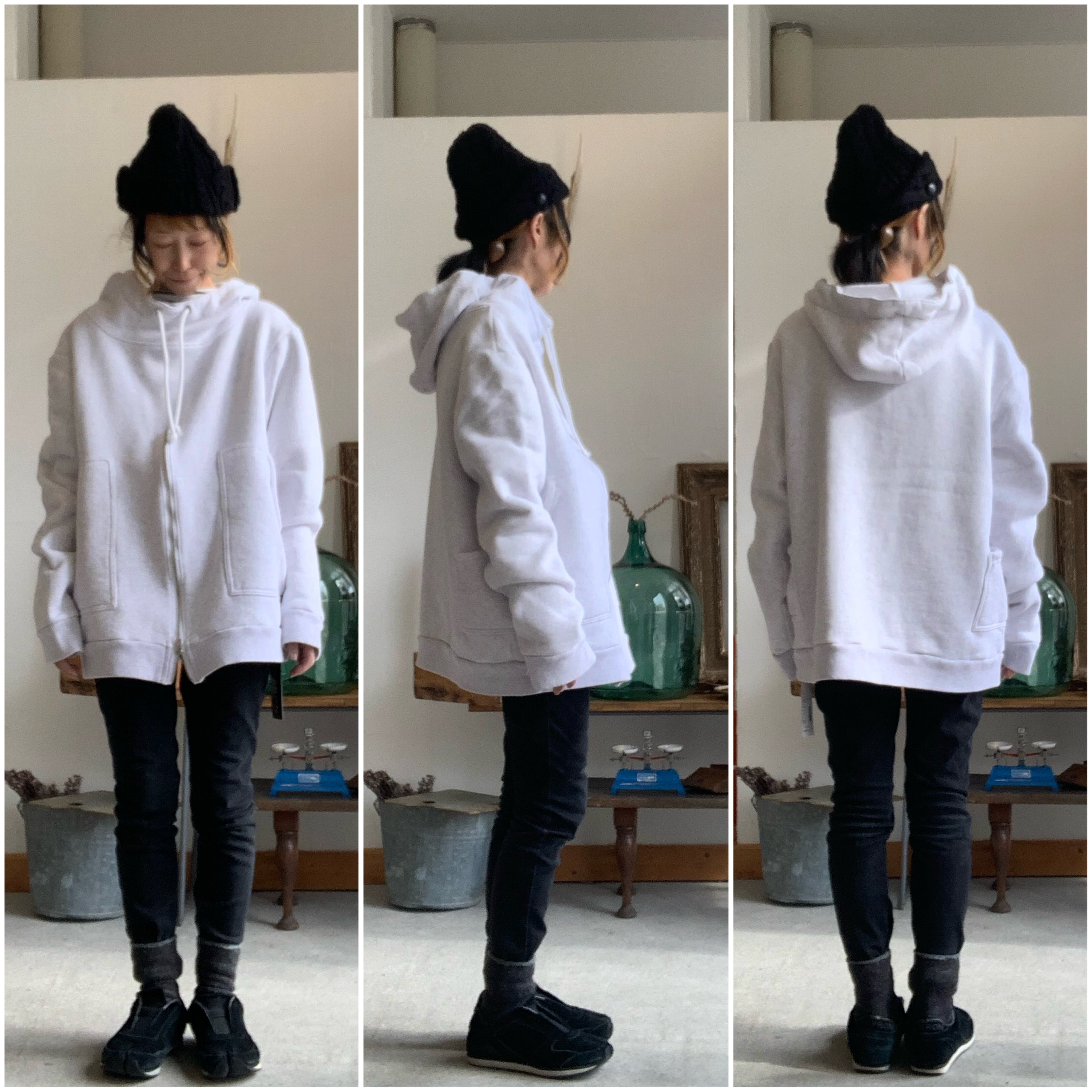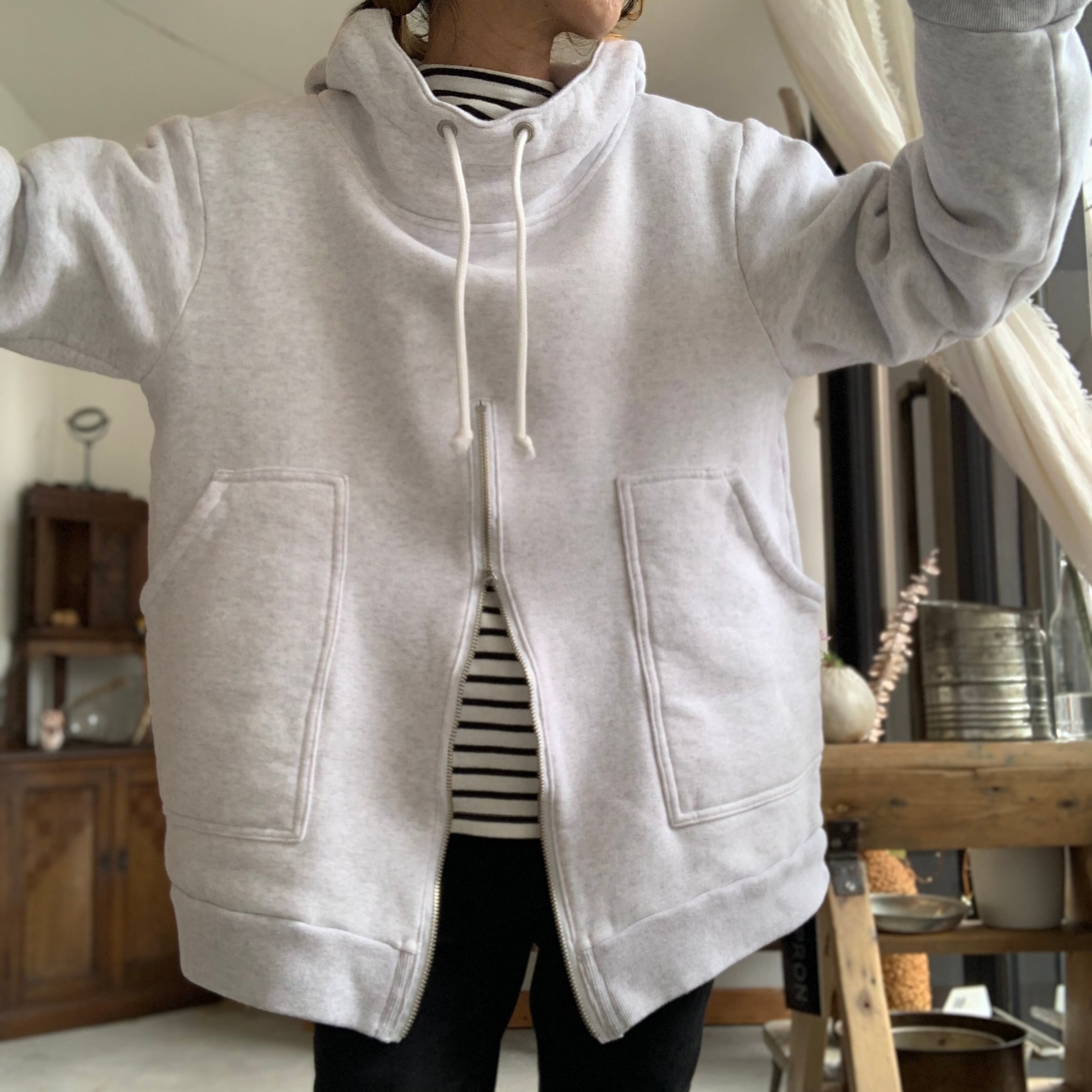 SWEAT ANORAK HOOD ZIP SMOCK /NAPRON