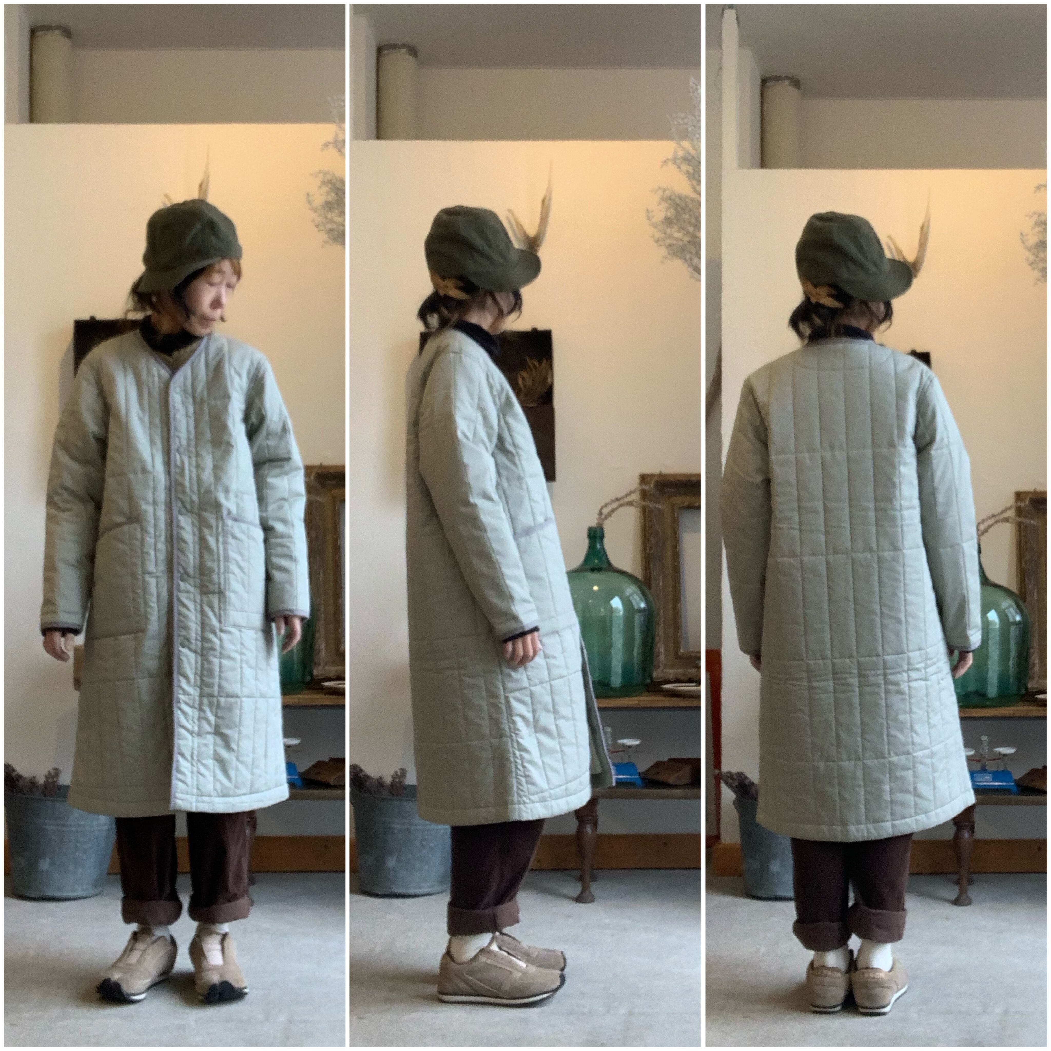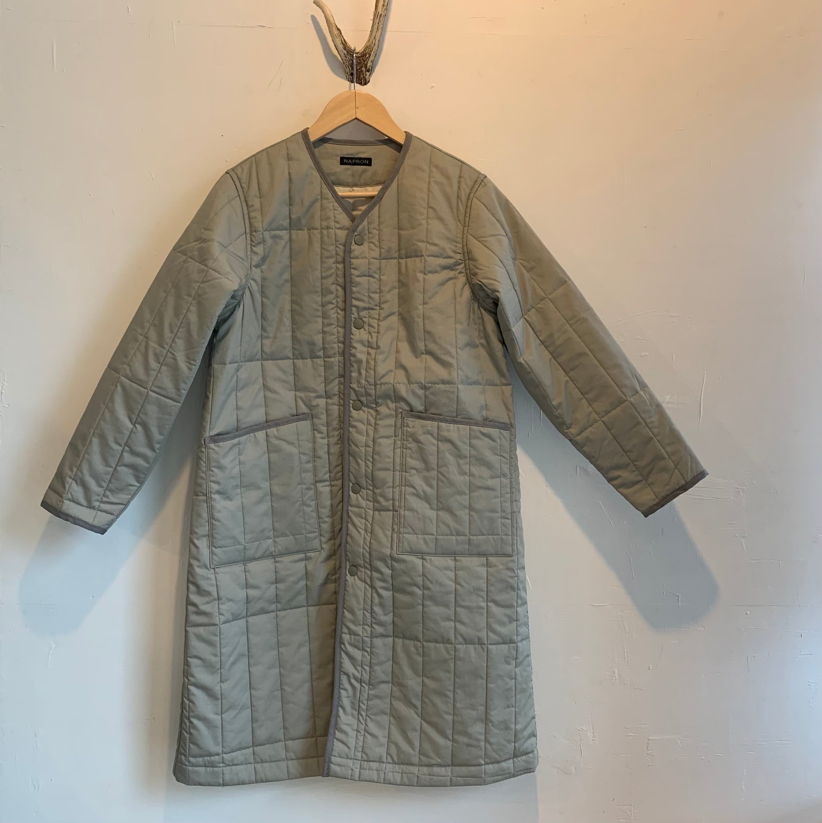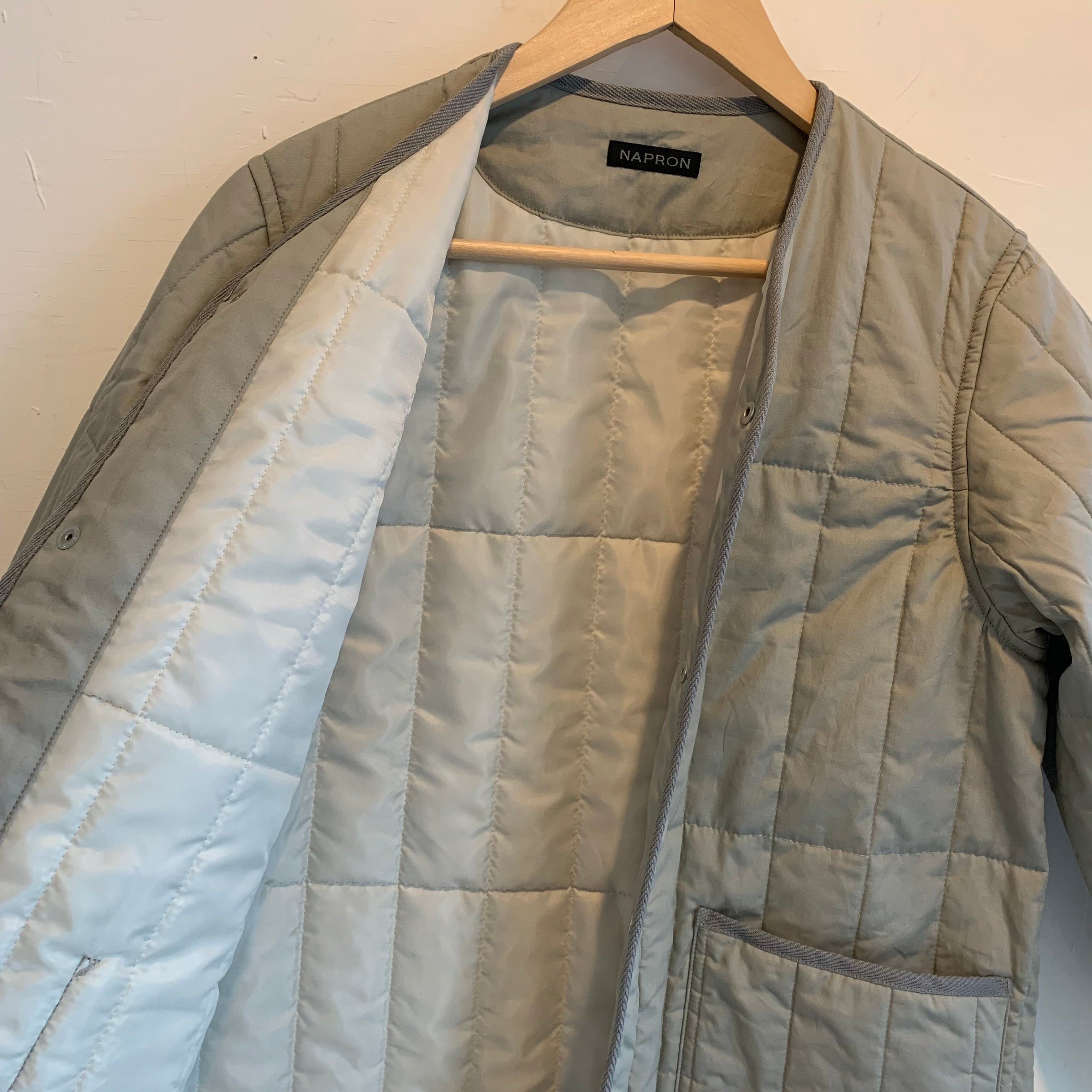 NAPRONオリジナルキルトを使用したノーカラーコートです。