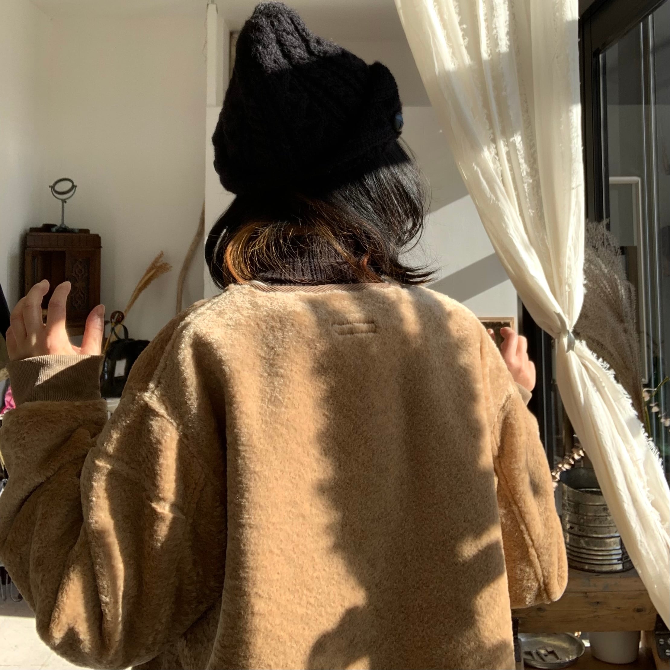 毛足の長さが短めで、高級リアルムートンの裏側のようなフェイクファーを使用しています。