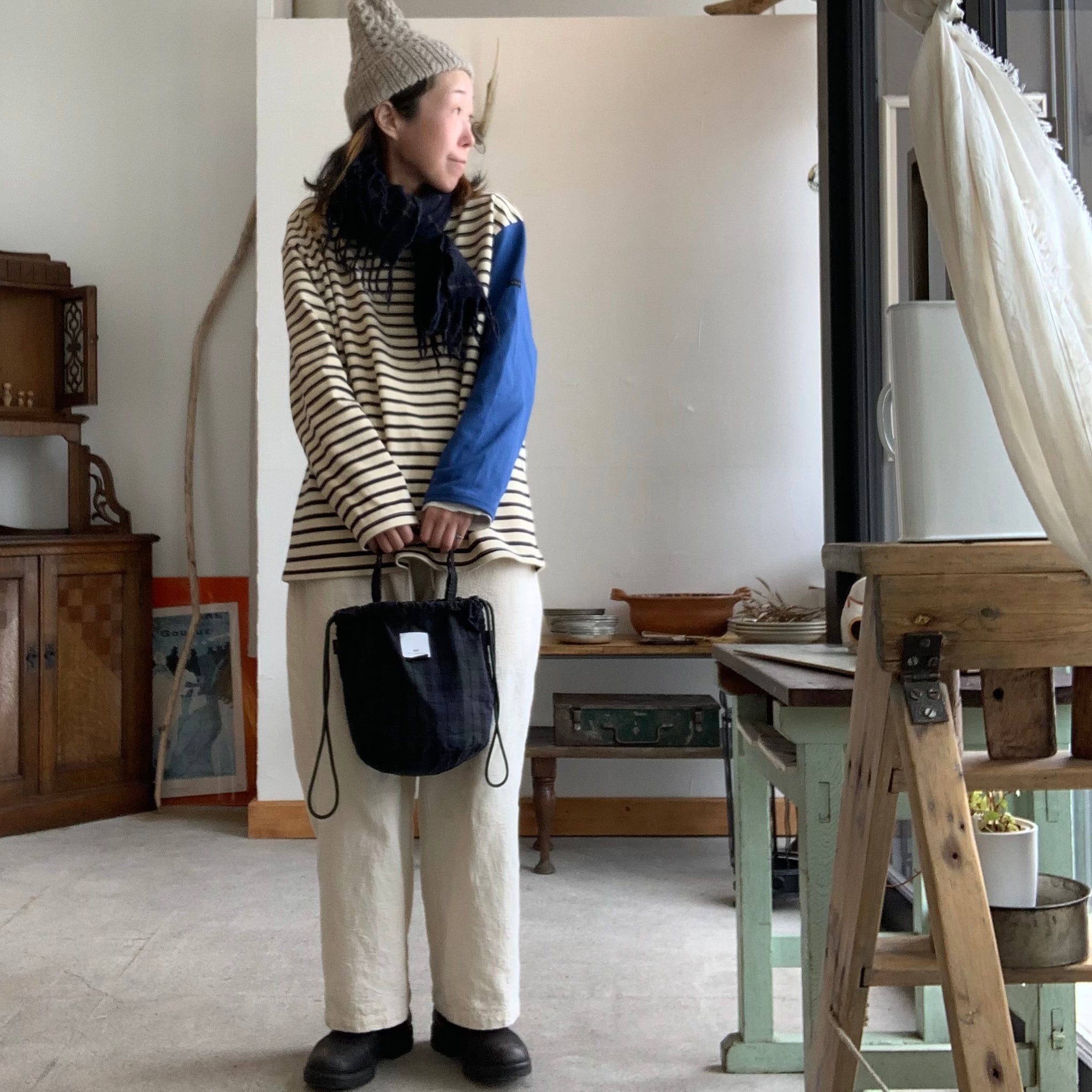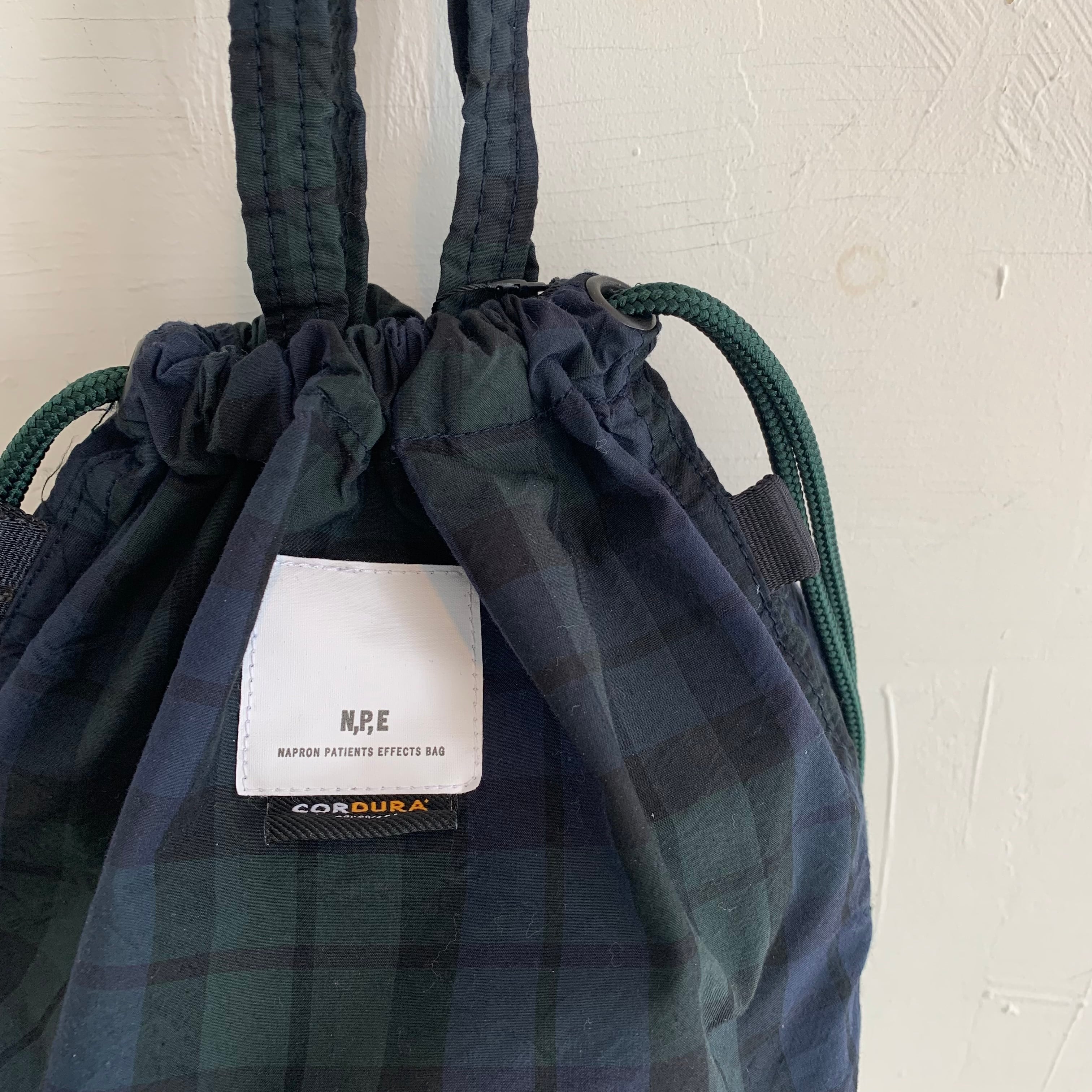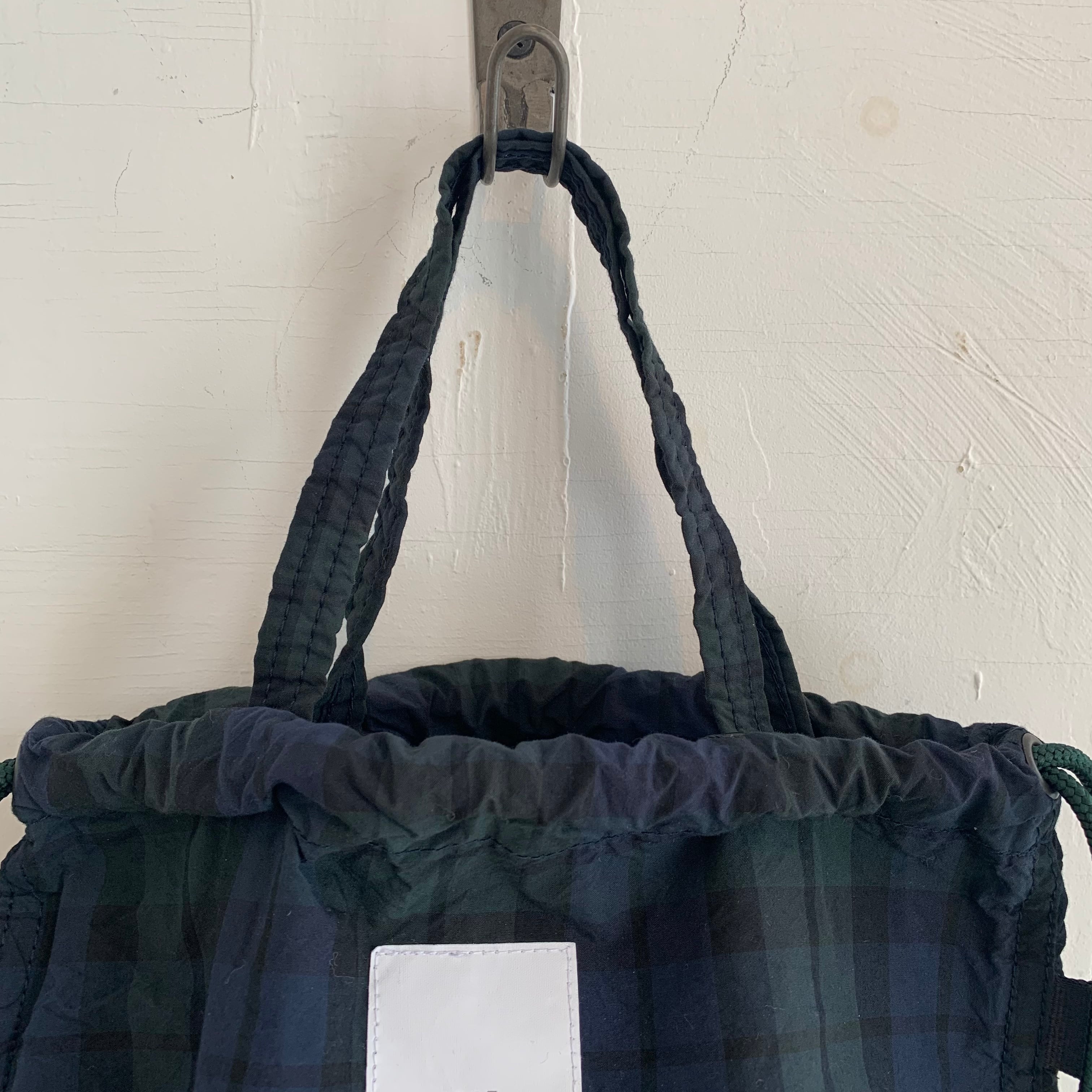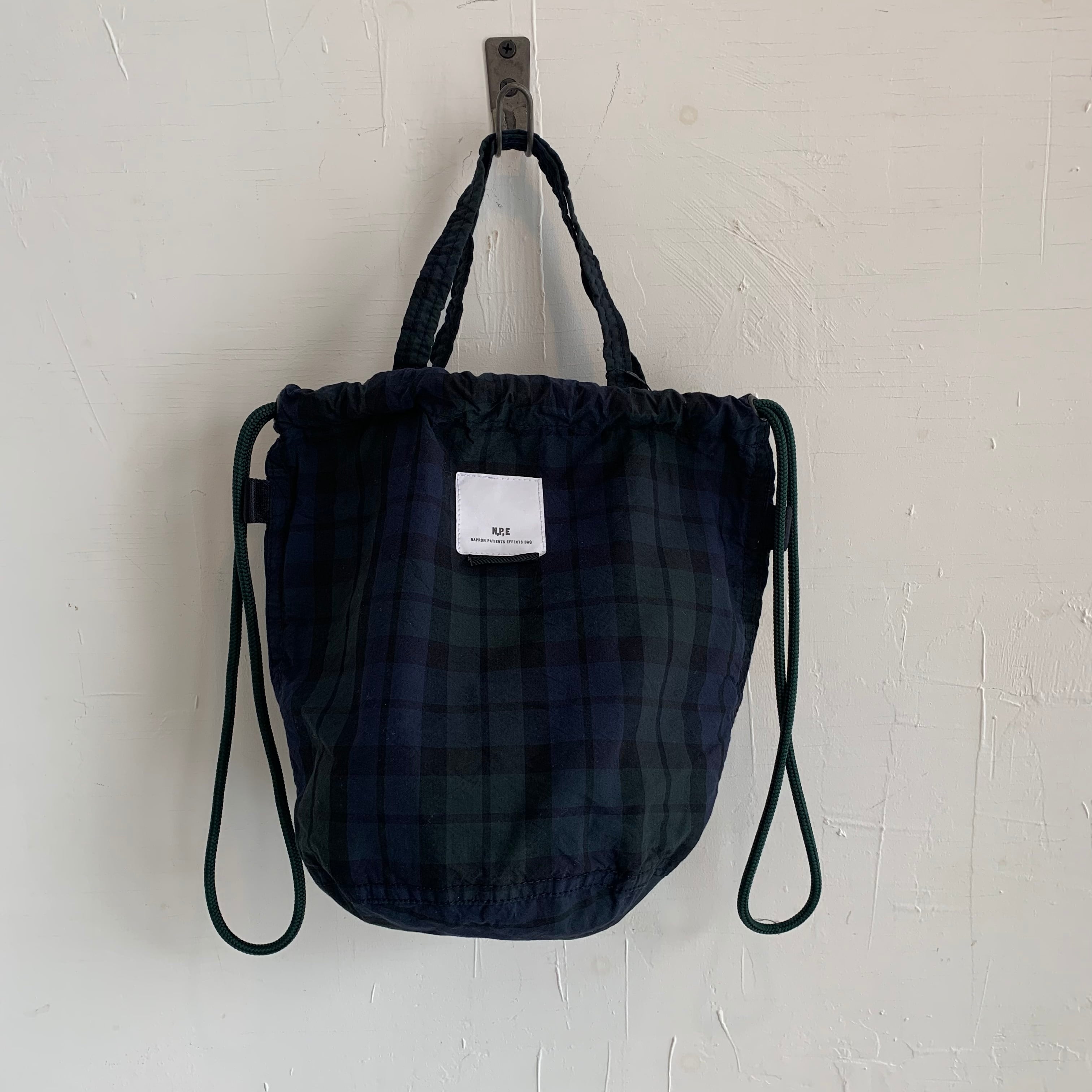コットンxコーデュラナイロンの混紡糸で織り上げた、軽やかで丈夫なPATIENTS BAG。シンプルなブラックウォッチはシンプルな装いにも馴染むシックなデザイン。