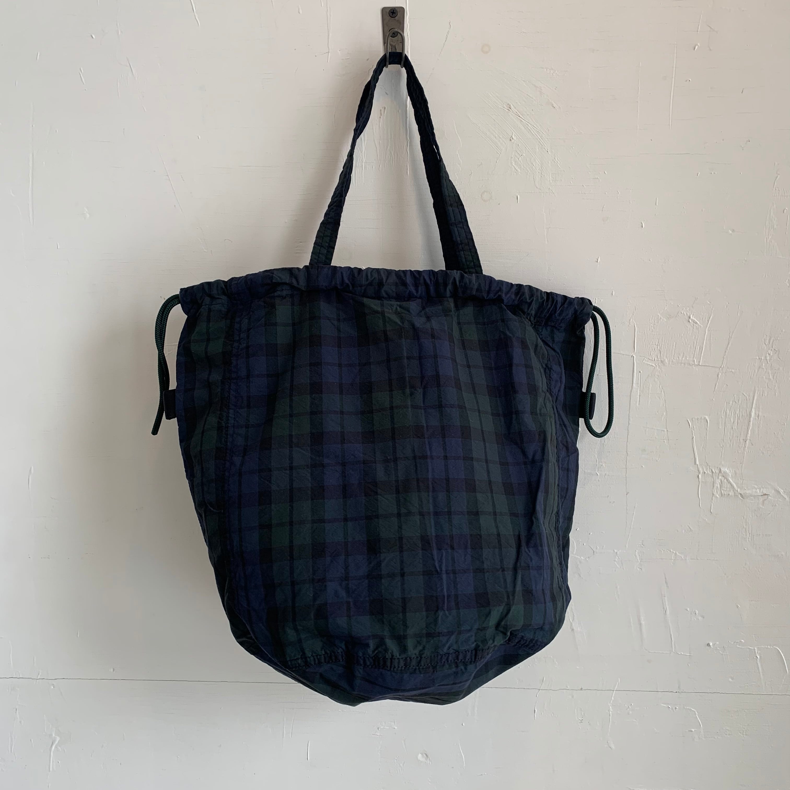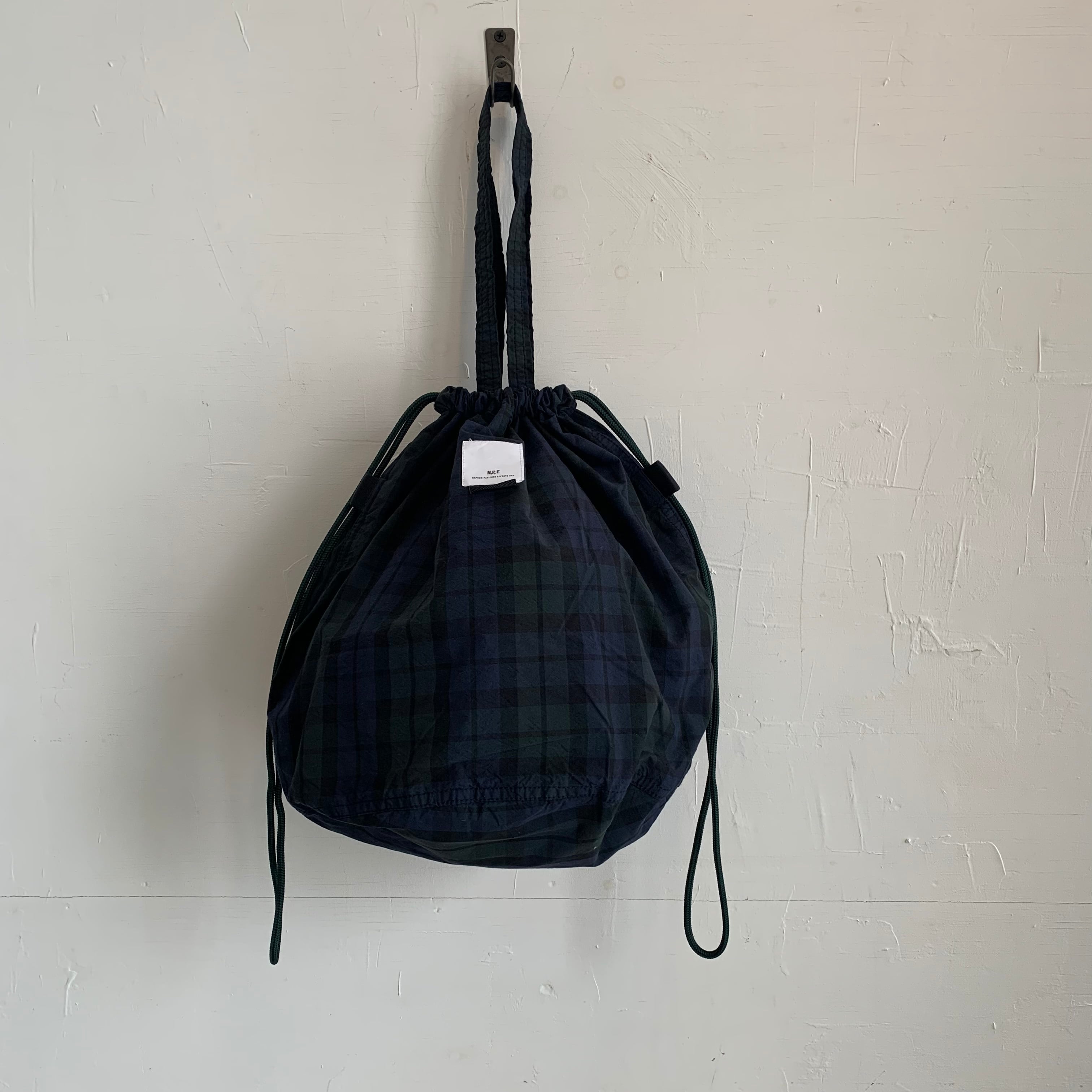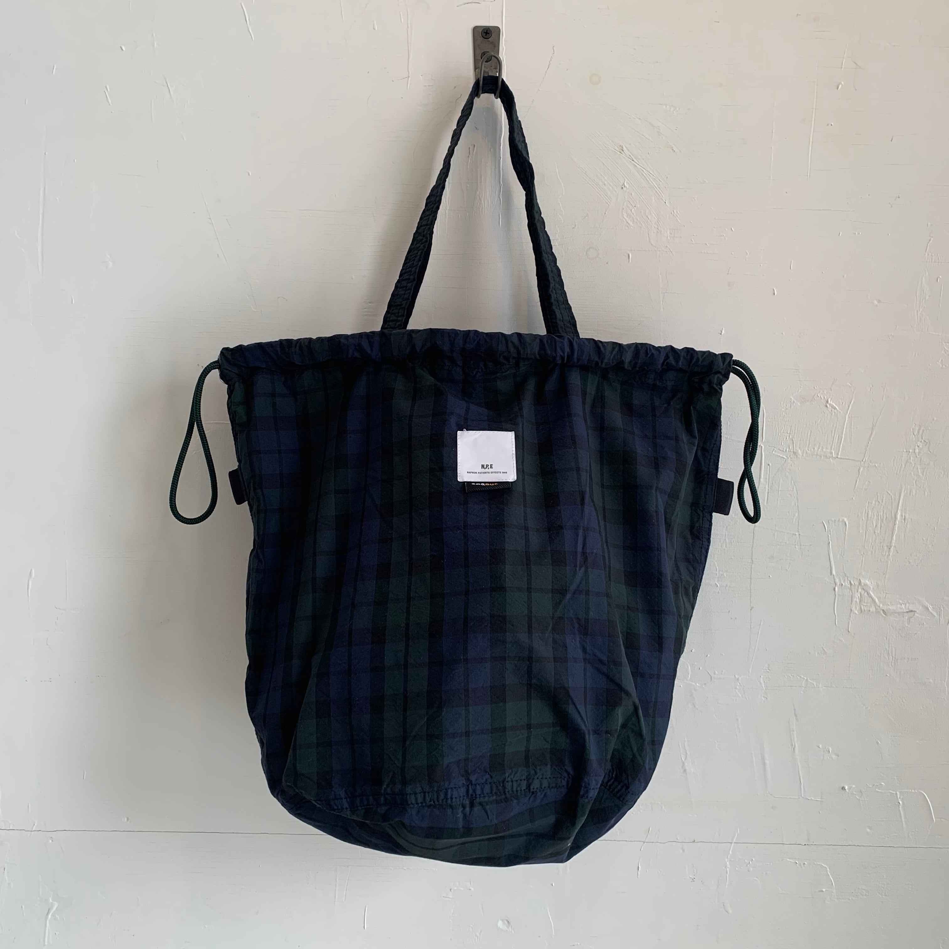 コットンxコーデュラナイロンの混紡糸で織り上げた、軽やかで丈夫なPATIENTS BAG。シンプルなブラックウォッチはシンプルな装いにも馴染むシックなデザイン。