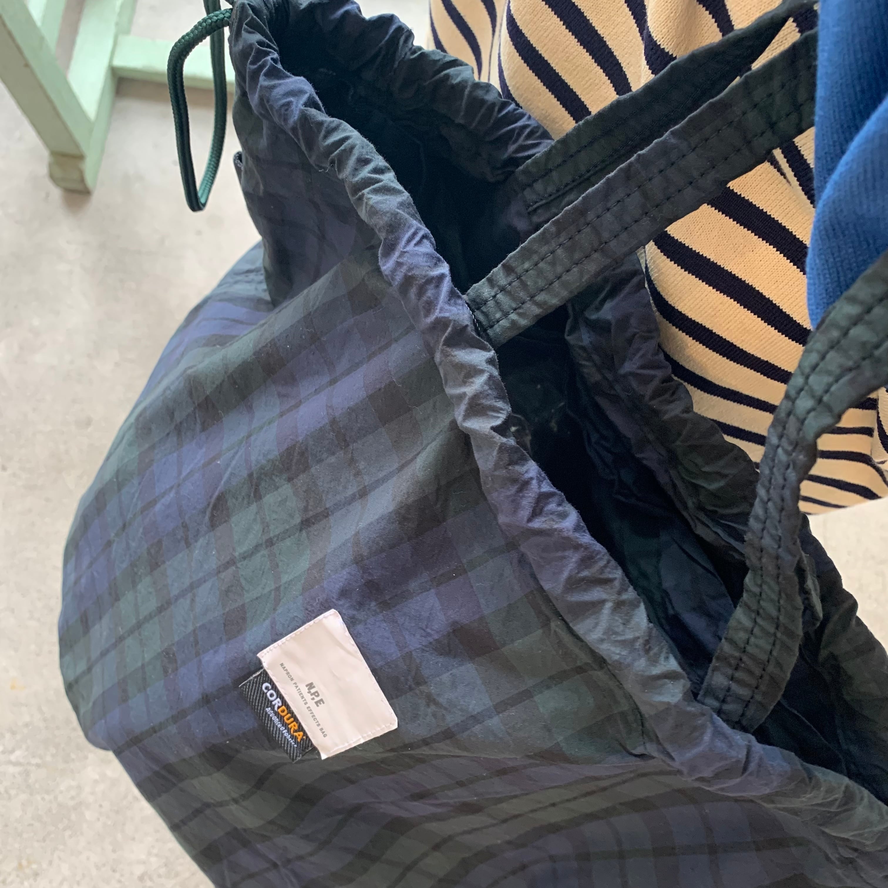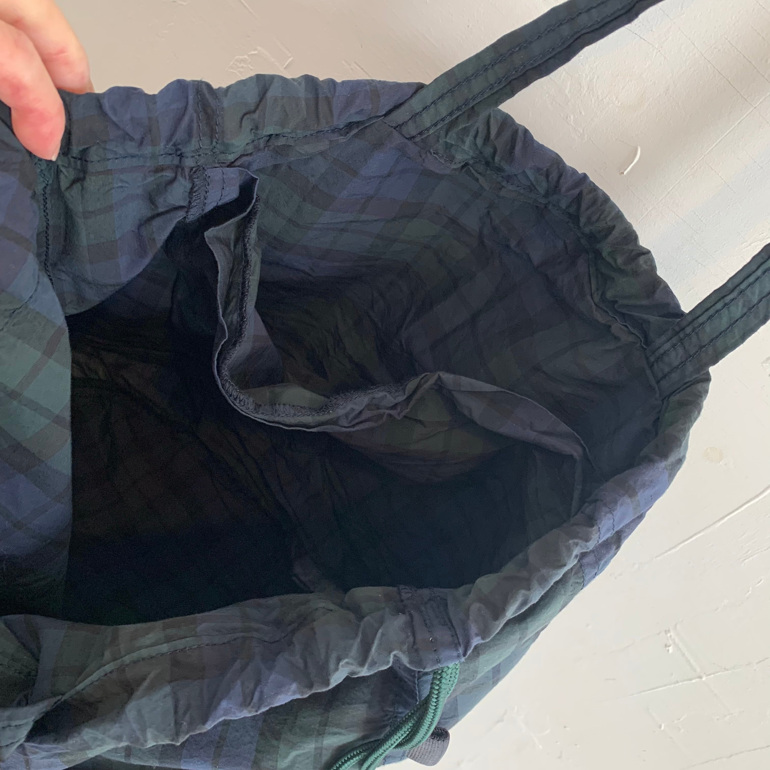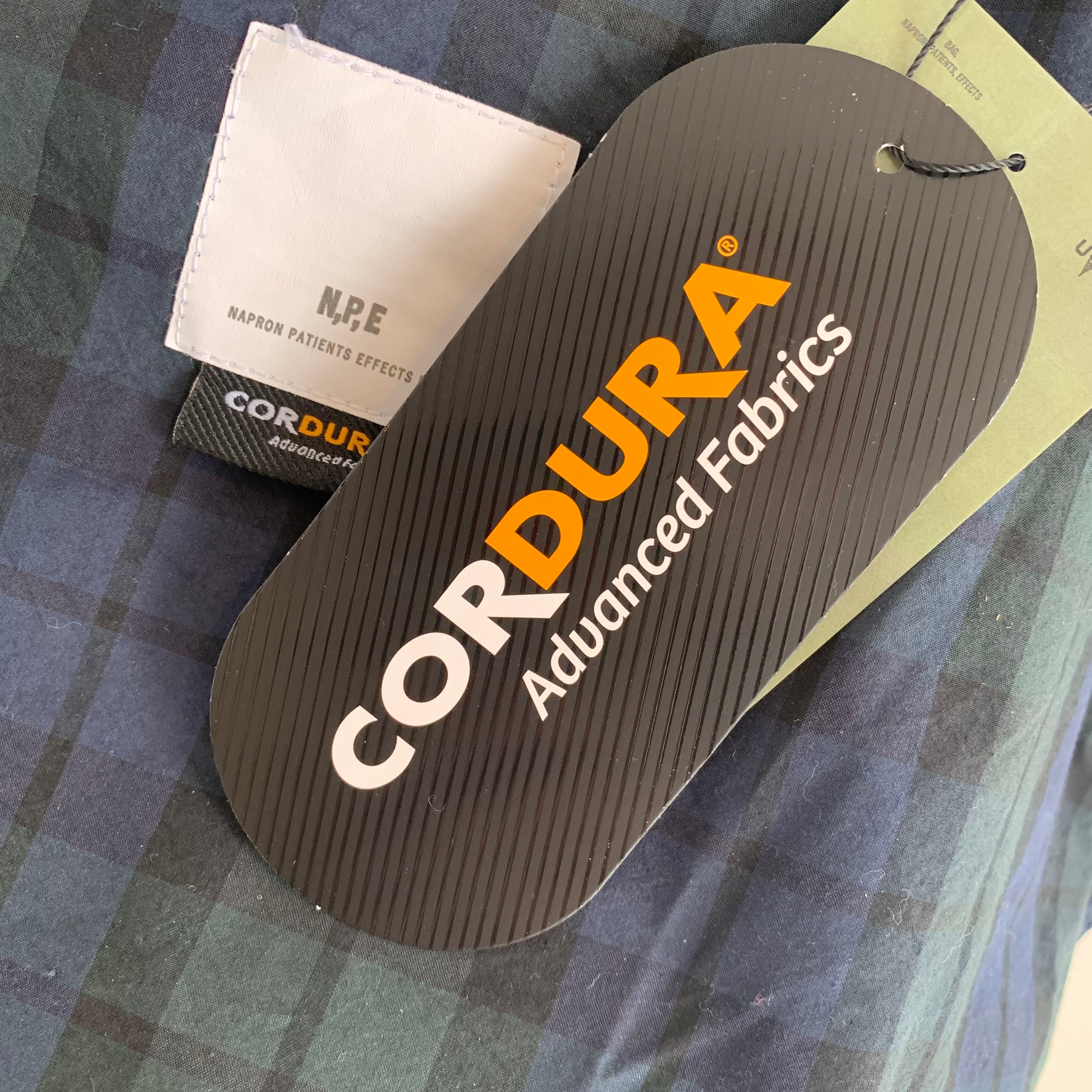コットンxコーデュラナイロンの混紡糸で織り上げた、軽やかで丈夫なPATIENTS BAG。シンプルなブラックウォッチはシンプルな装いにも馴染むシックなデザイン。