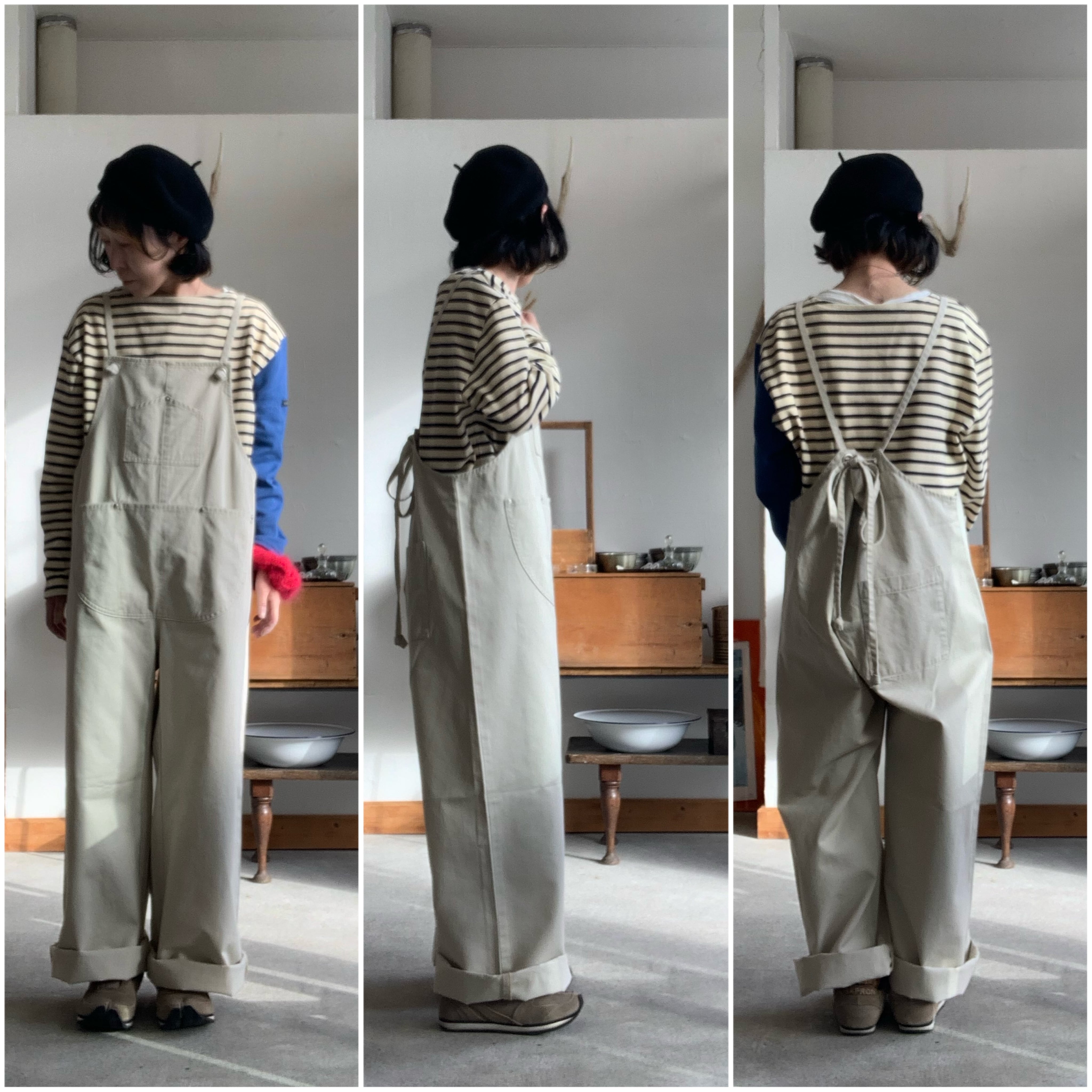 NAPRONの定番エプロンであるSPLIT APRONをサロペットパンツへとアップデートさせています。
