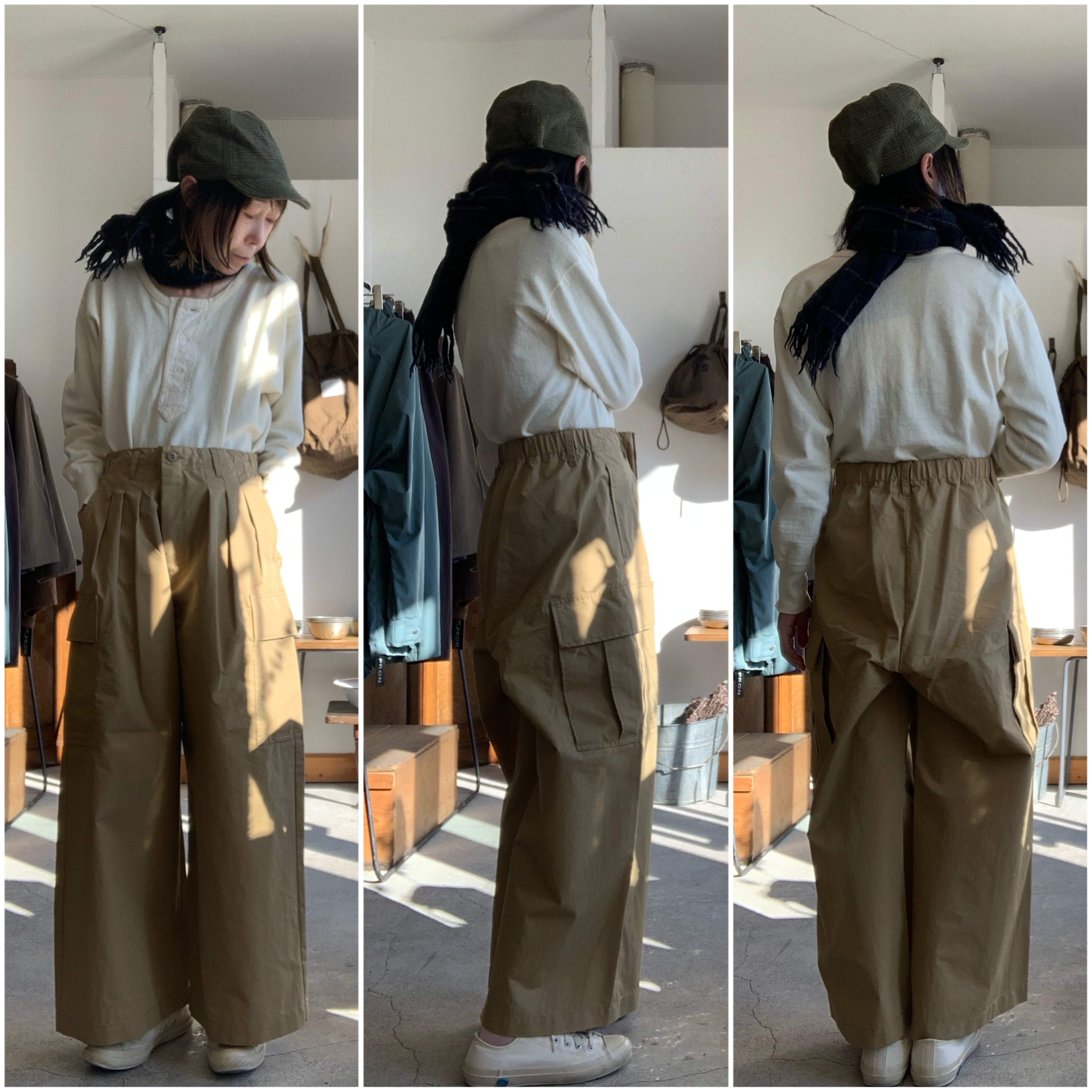 古くから作業服として多くの人に着用され続けてきた「もんぺ」にカーゴパンツの要素を加えています。
