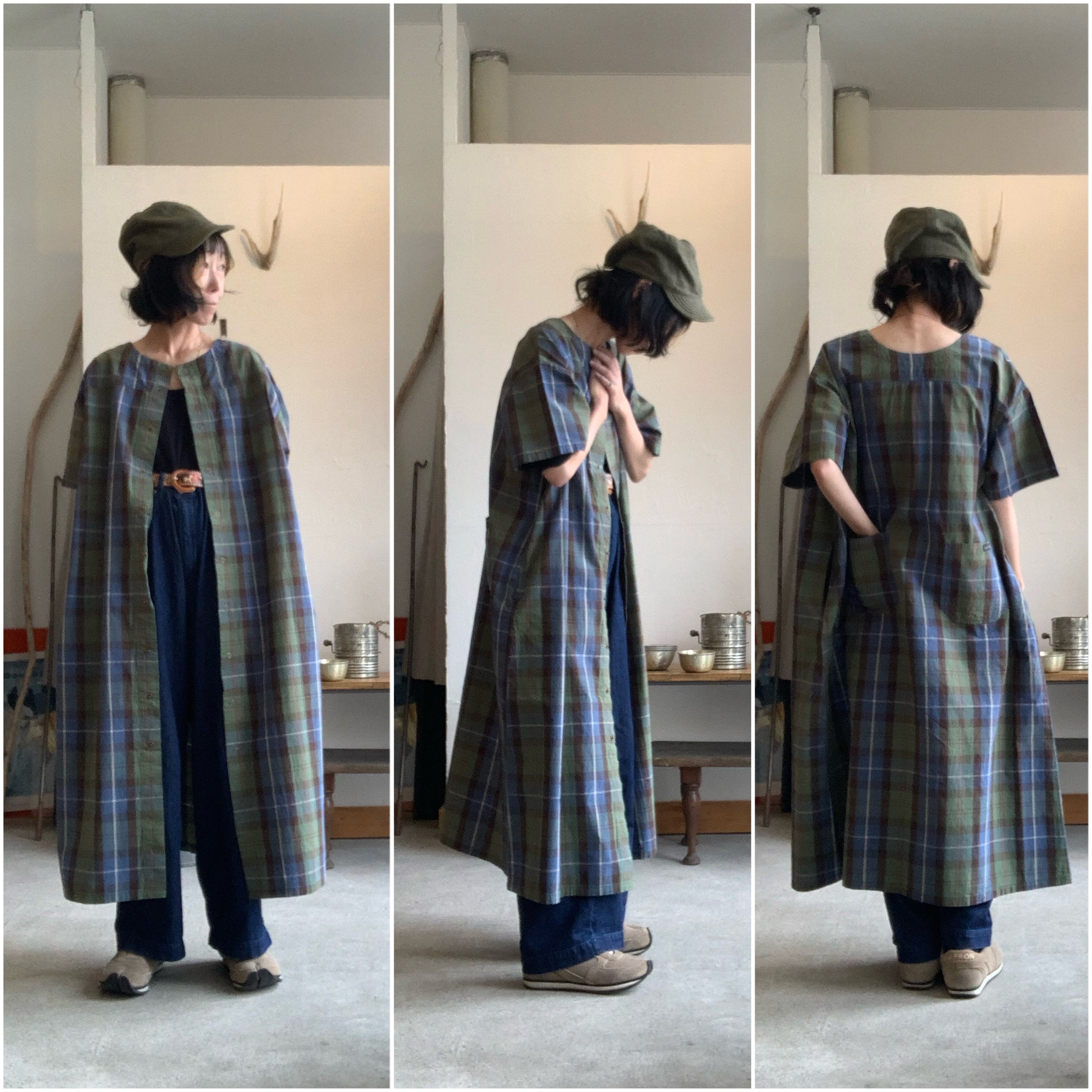 ドイツ軍のメディカルコートをスモックワンピースへとアレンジしています