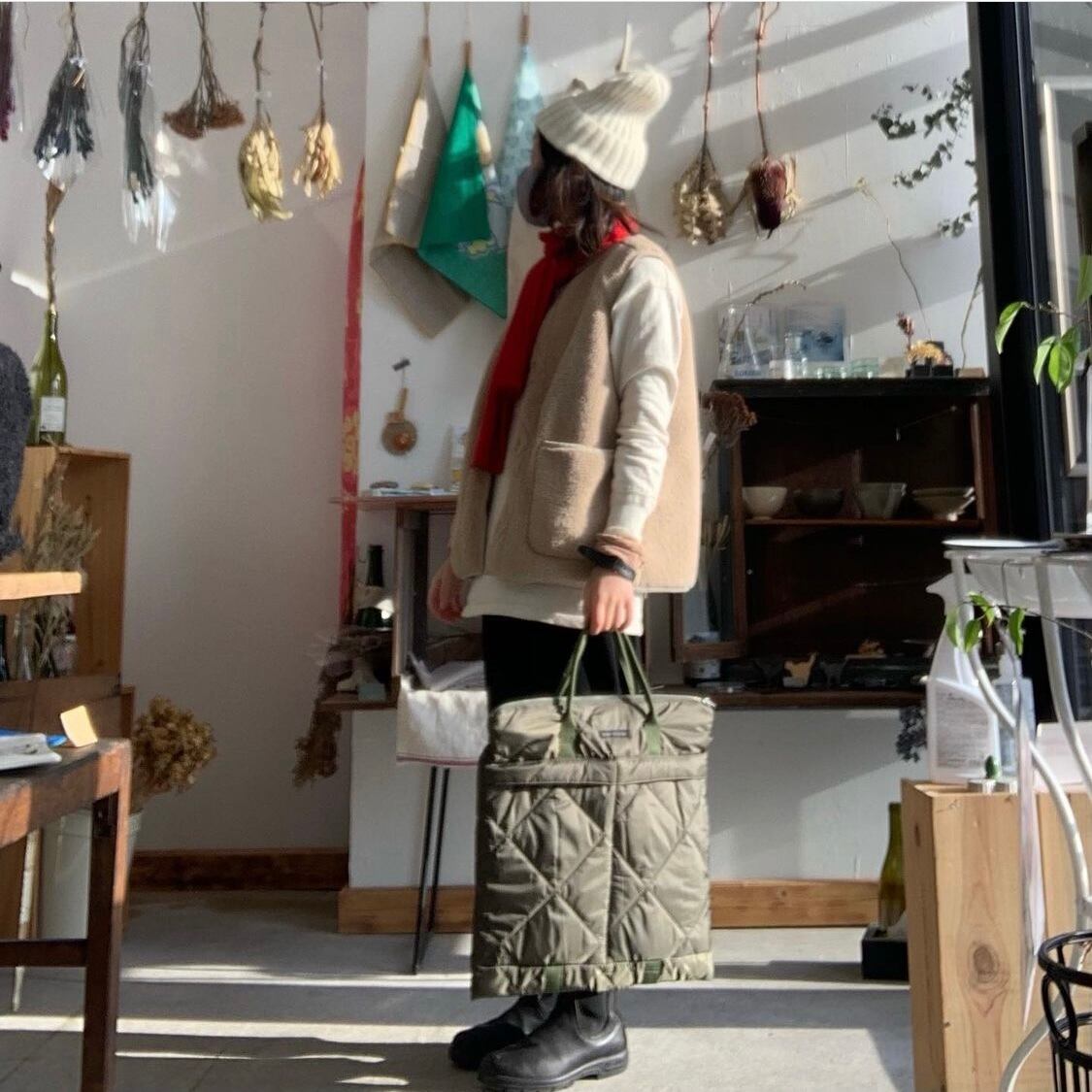 オリジナルキルトで仕立てたヘルメットバッグです。