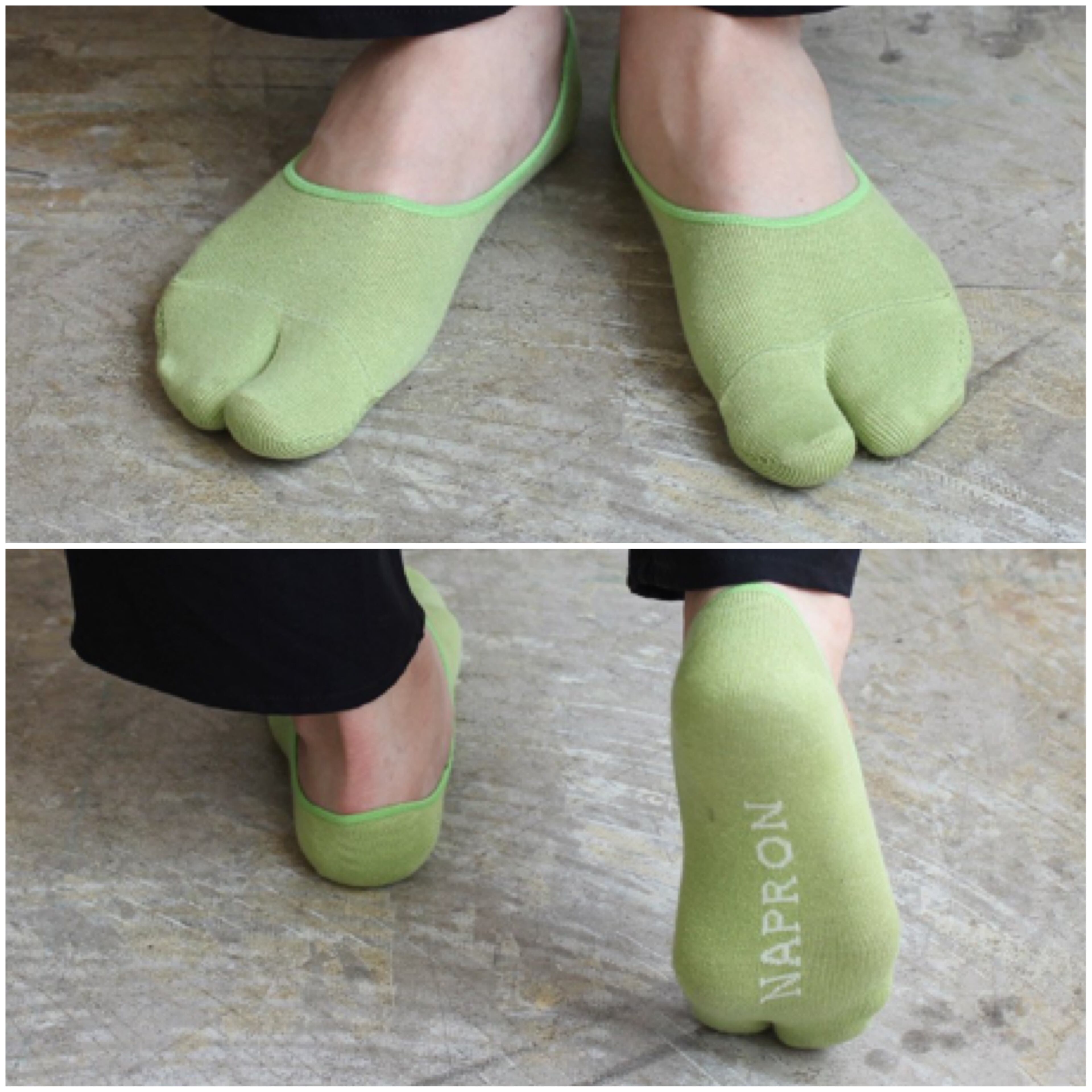 NAPRONロゴが足裏にデザインされた足袋型フットカバー。