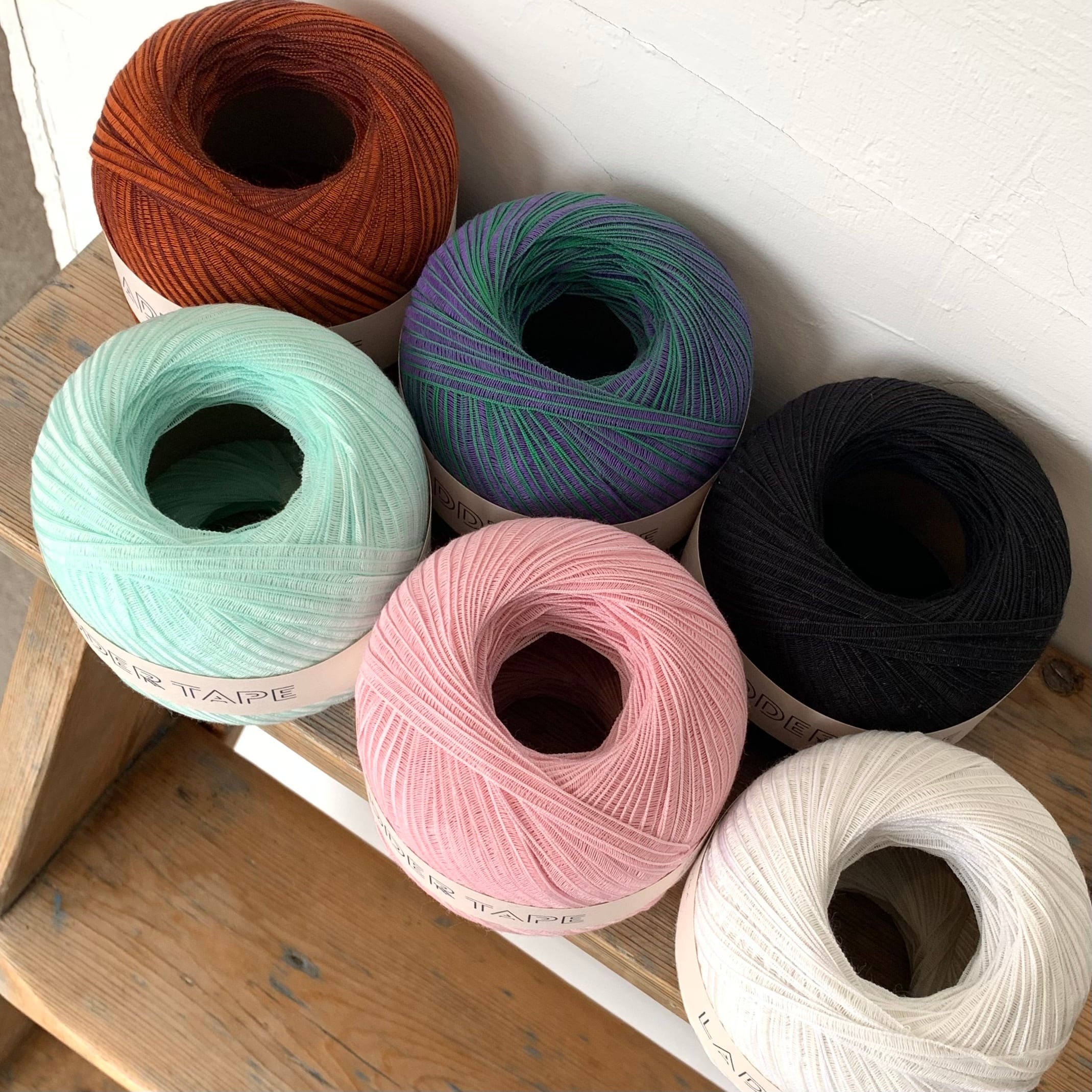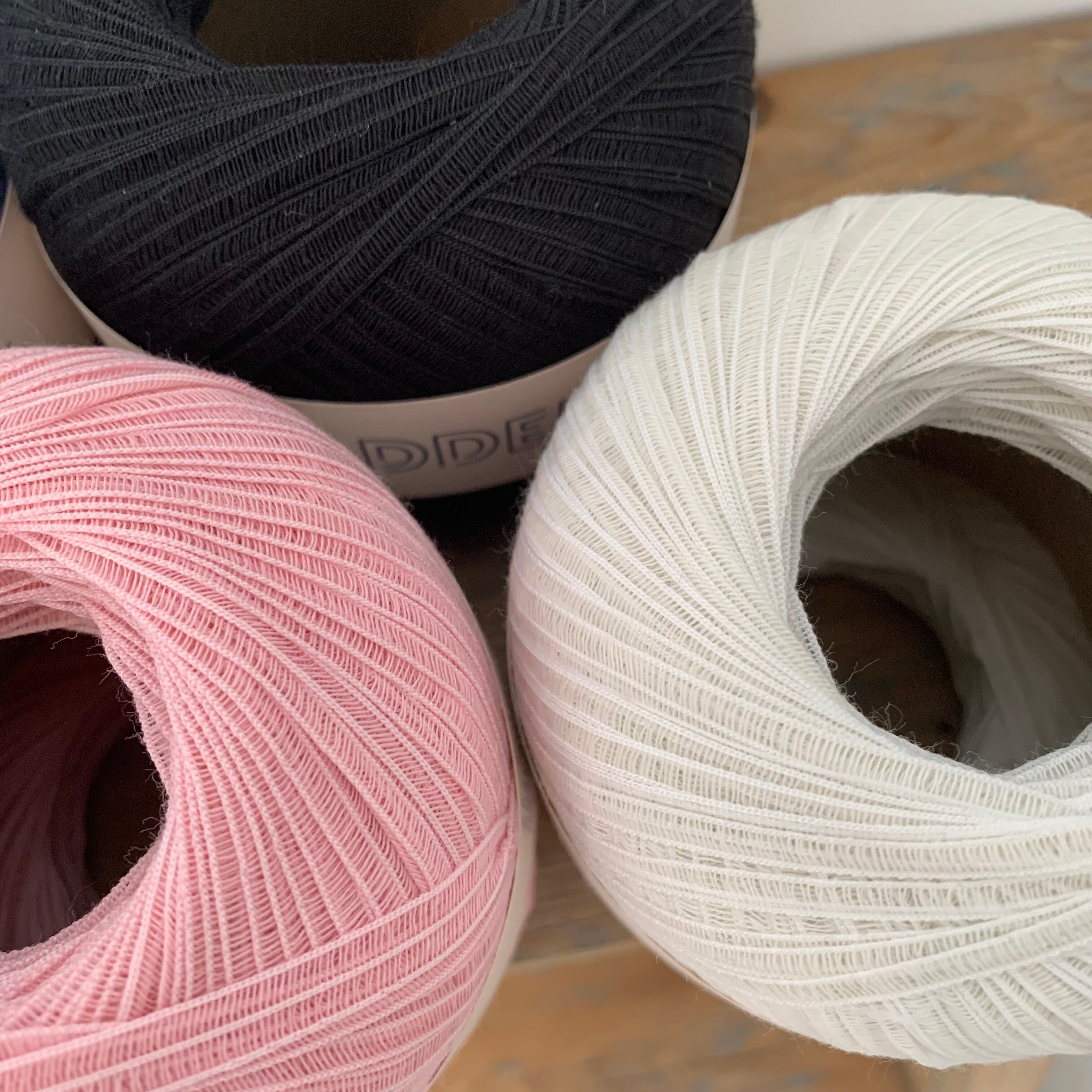 涼しげでハリのあるテープヤーンの形状や質感は、風通しが良くさらっと心地良く身に付けられる春夏におすすめの糸です。