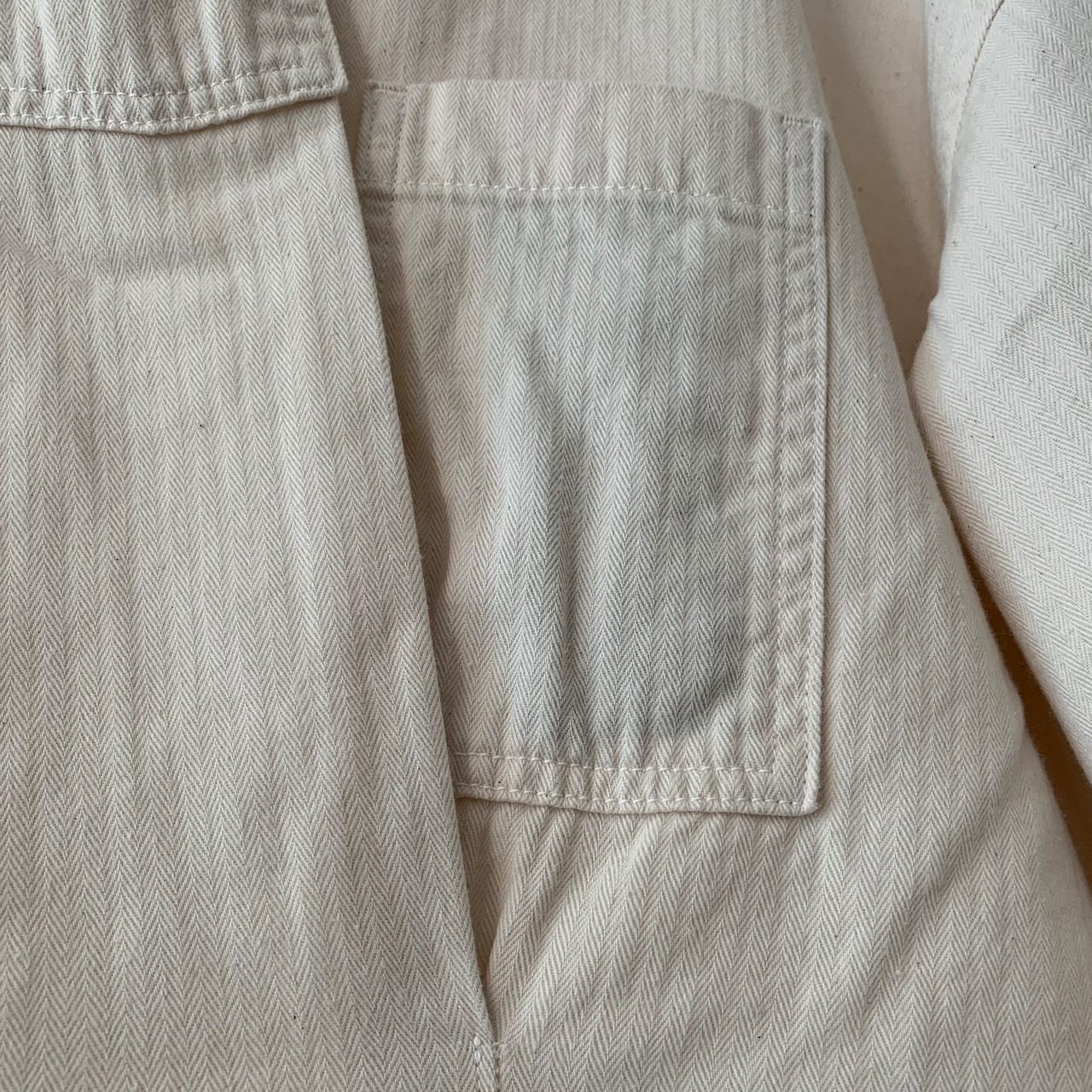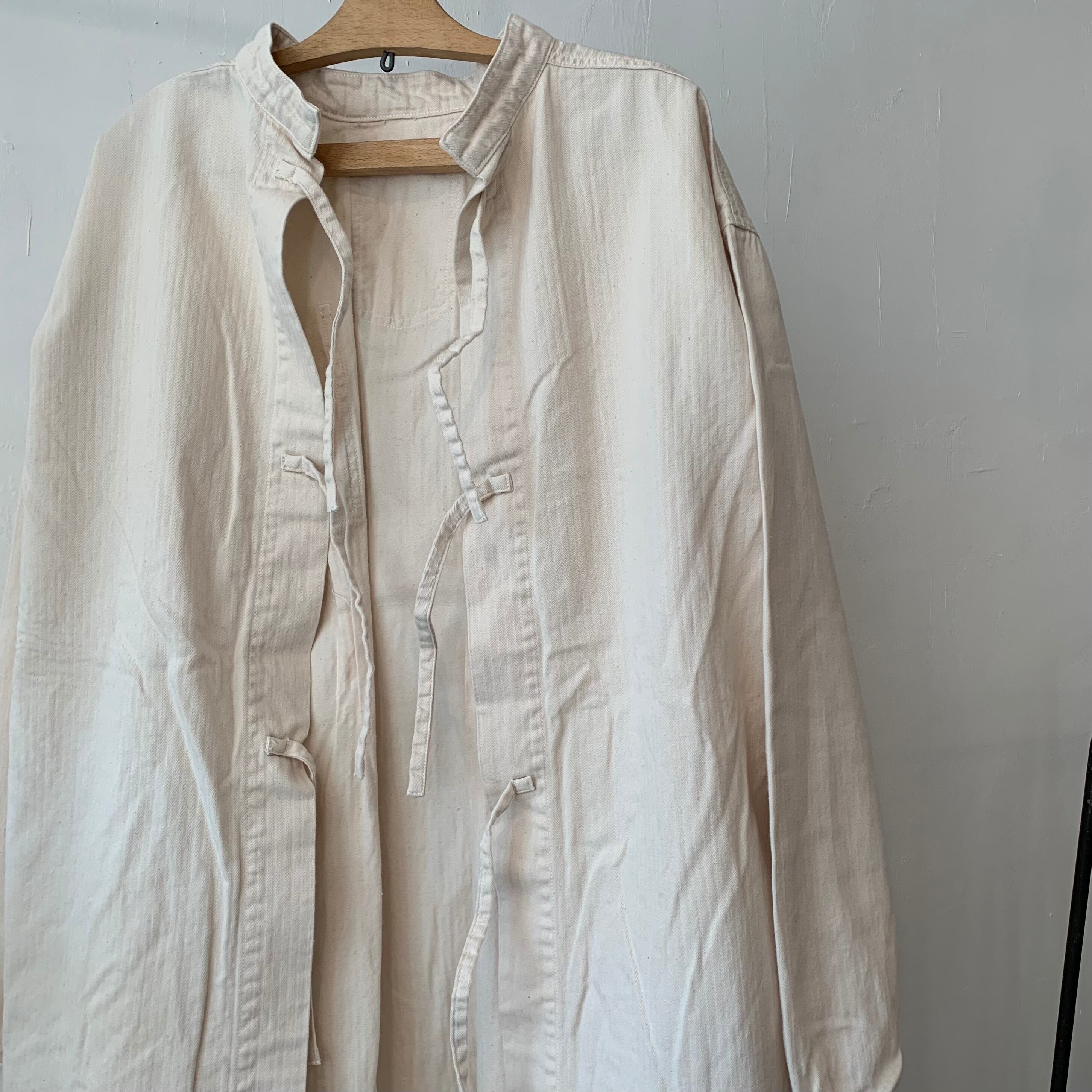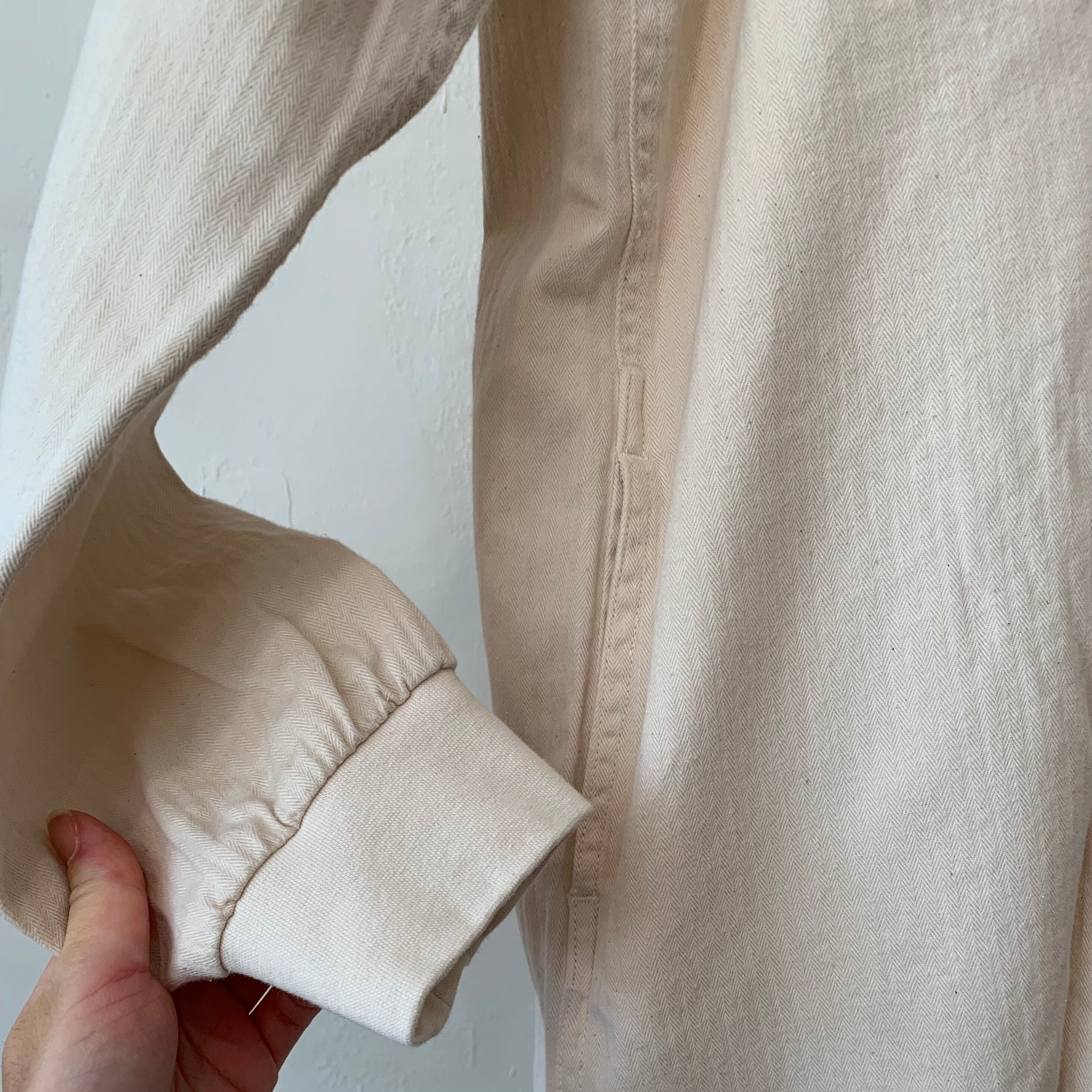 US NAVYサージカルガウンのウエストパーツを削り、ラフなシルエットへとリニューアル。