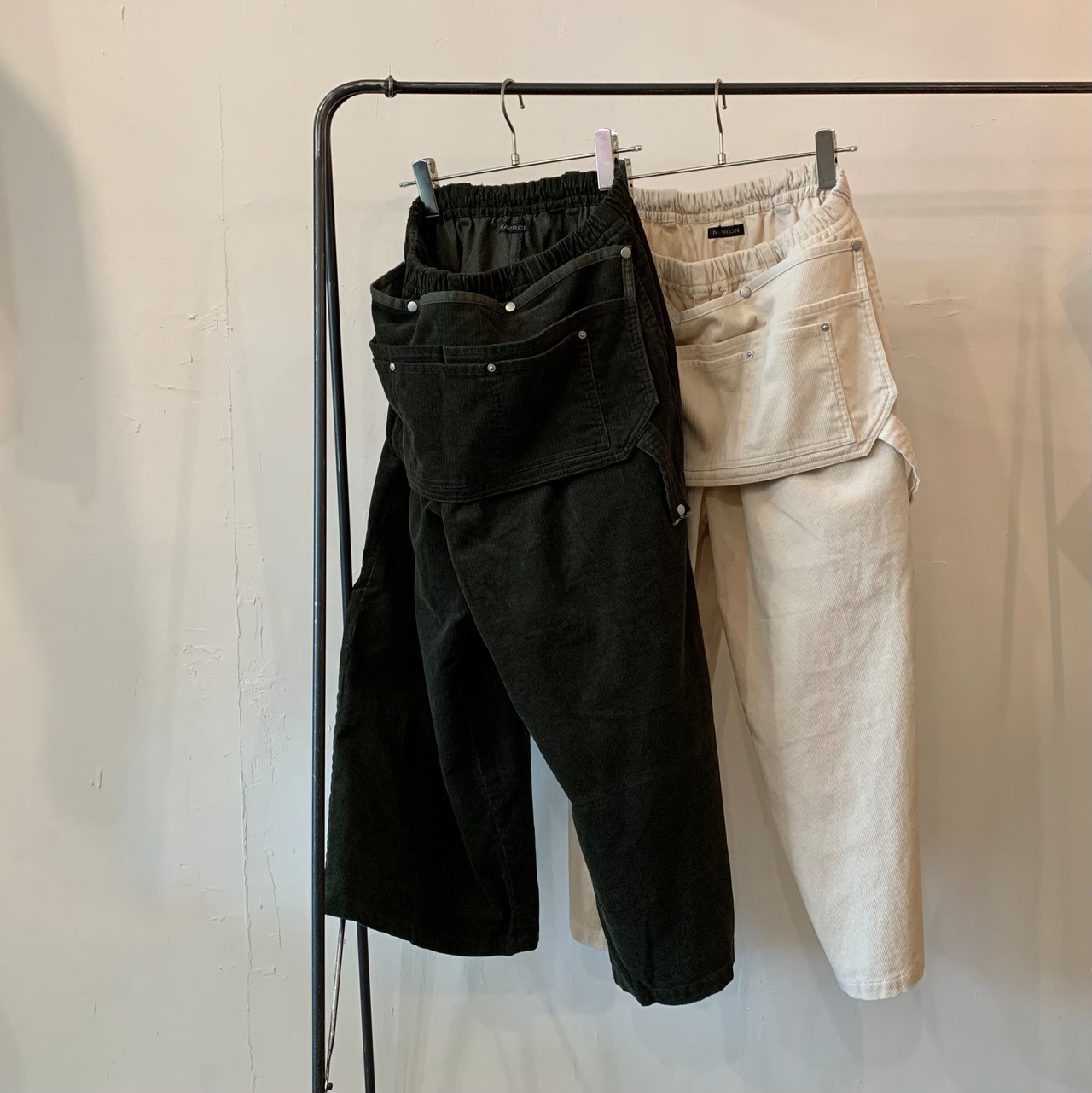 エプロンパンツとしてもワイドパンツとしても使えるため、コーディネートしやすいアイテムです。