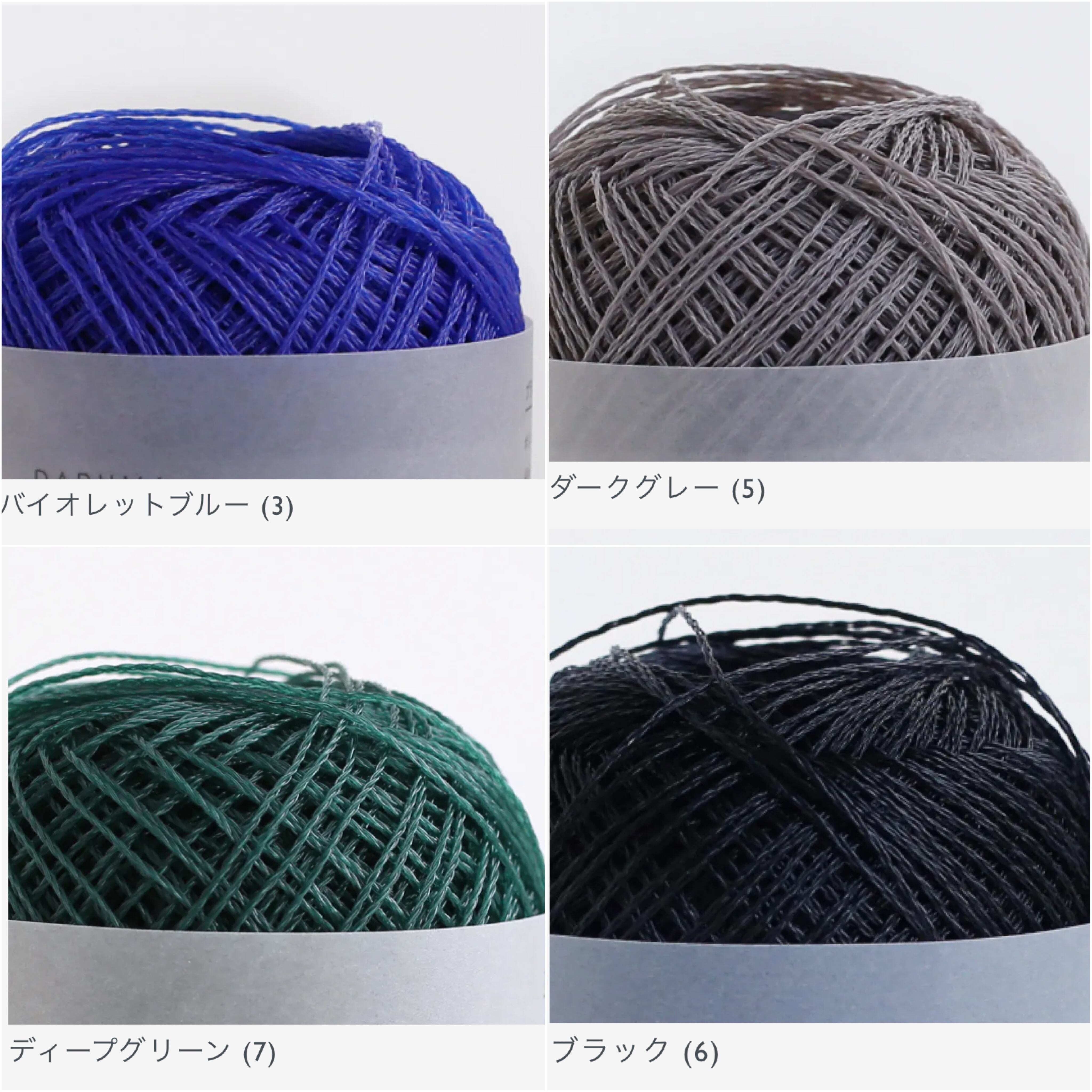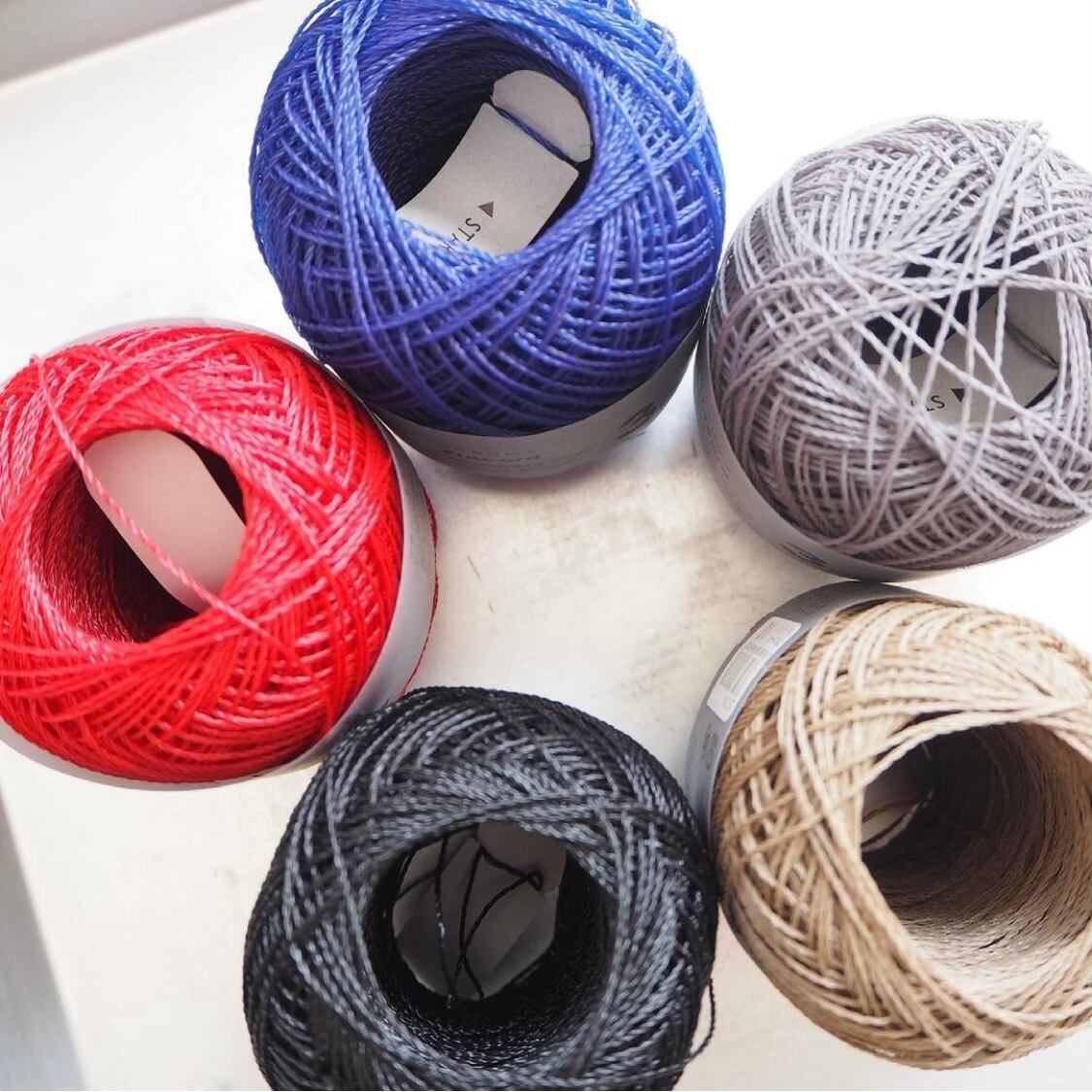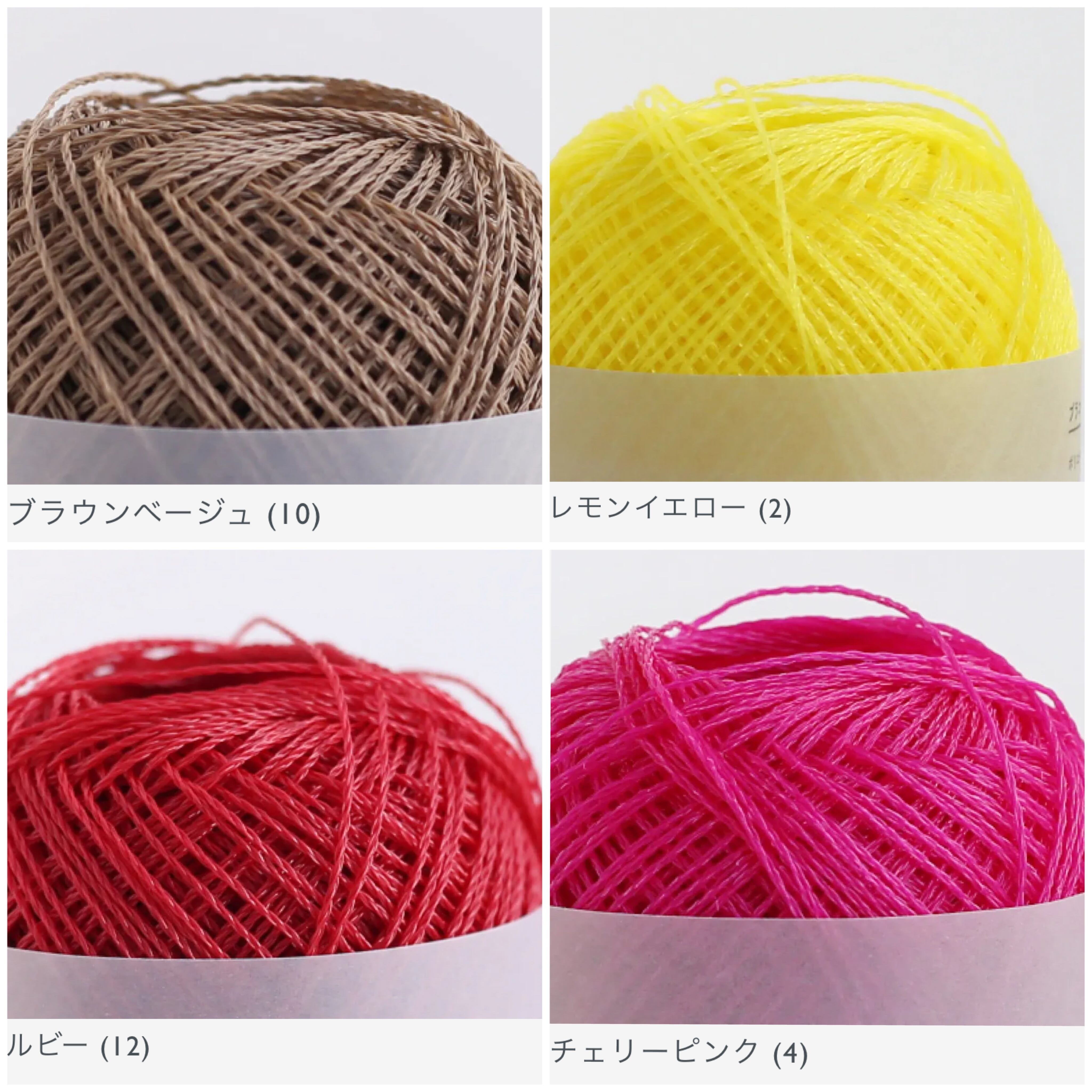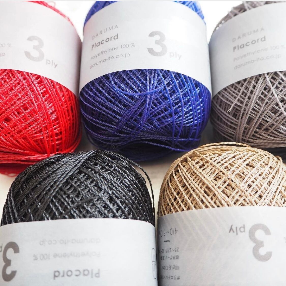 プラスチックの細い糸を何本か撚り合わせて糸にした個性的な糸です。2015年に発売した"マテリアルコード"と同じタイプの糸ですが、 原料や撚り回数を調整し、より柔らかく編みやすく改良しました。3本撚り(3ply)の細タイプは繊細な編み地の作品を編むのにおすすめです。