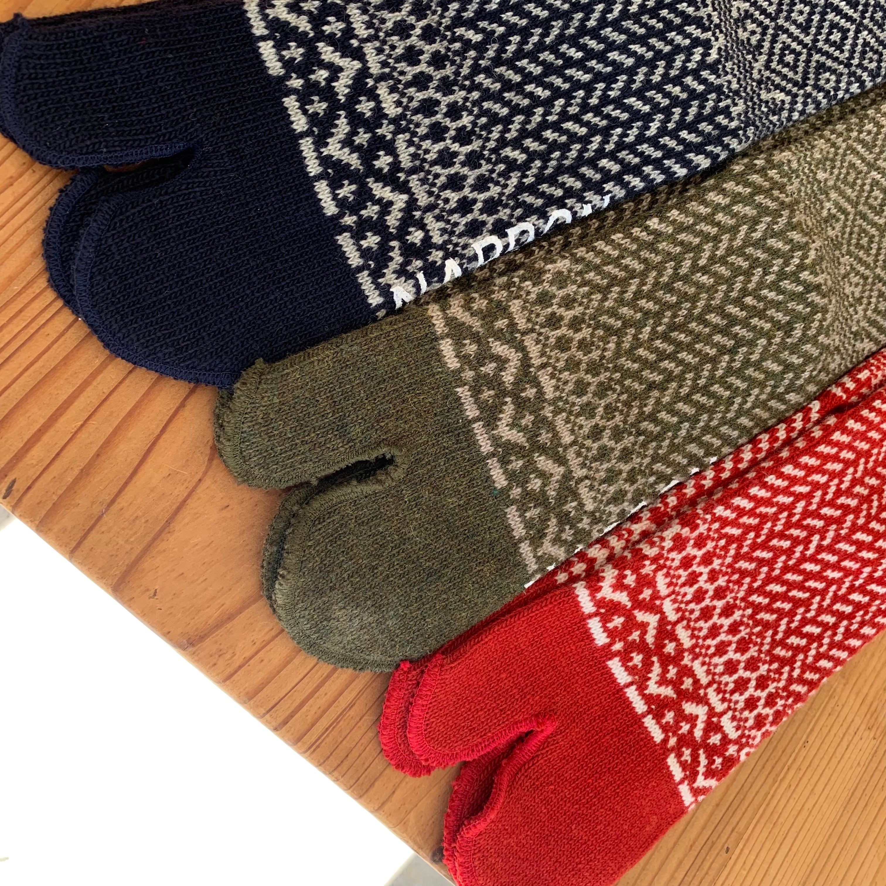 足袋型では珍しい総柄のジャカード編みソックスです。
