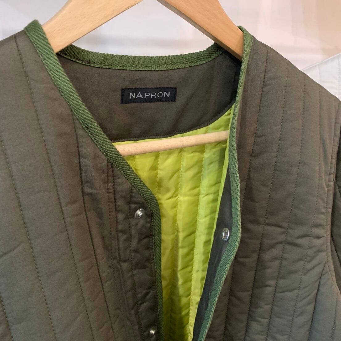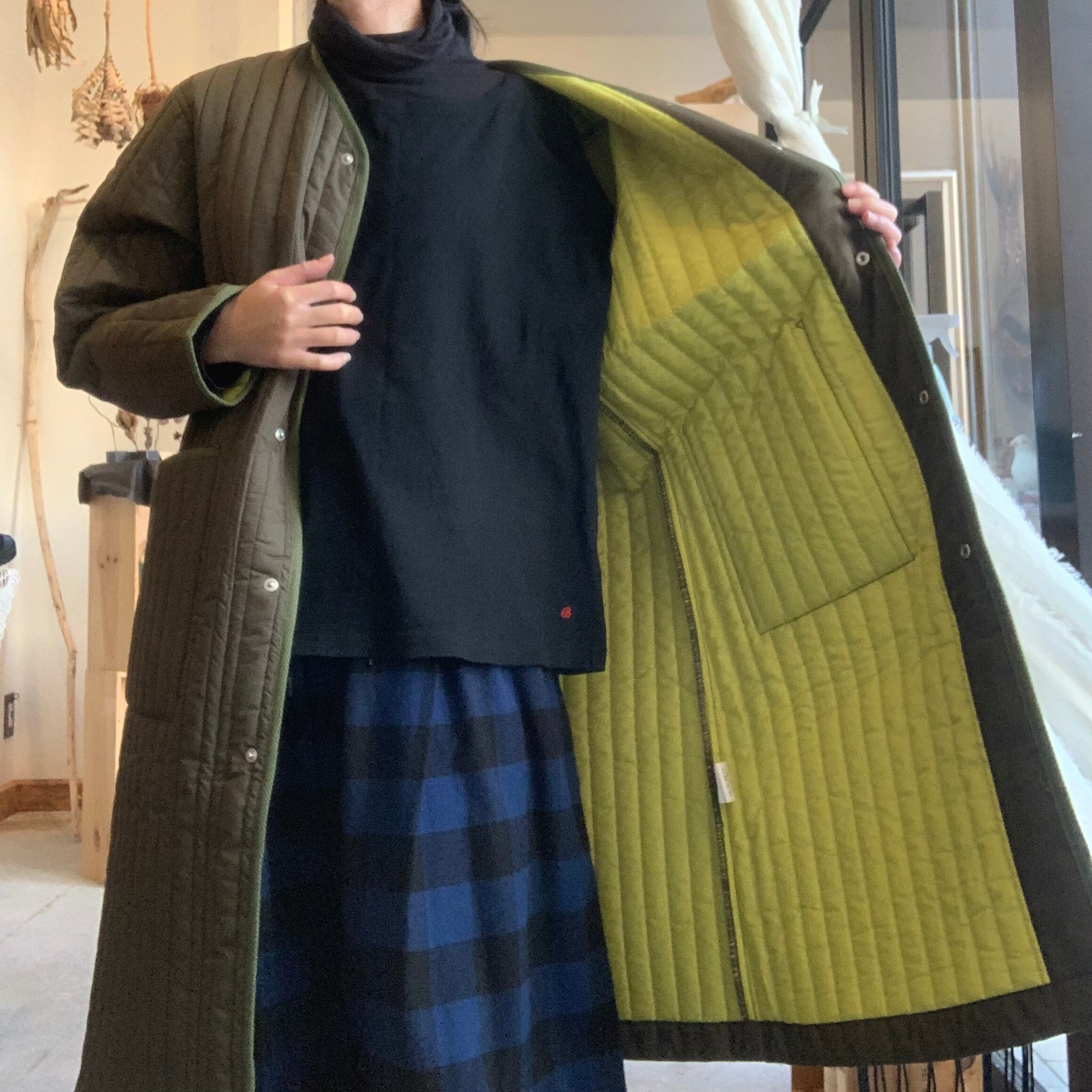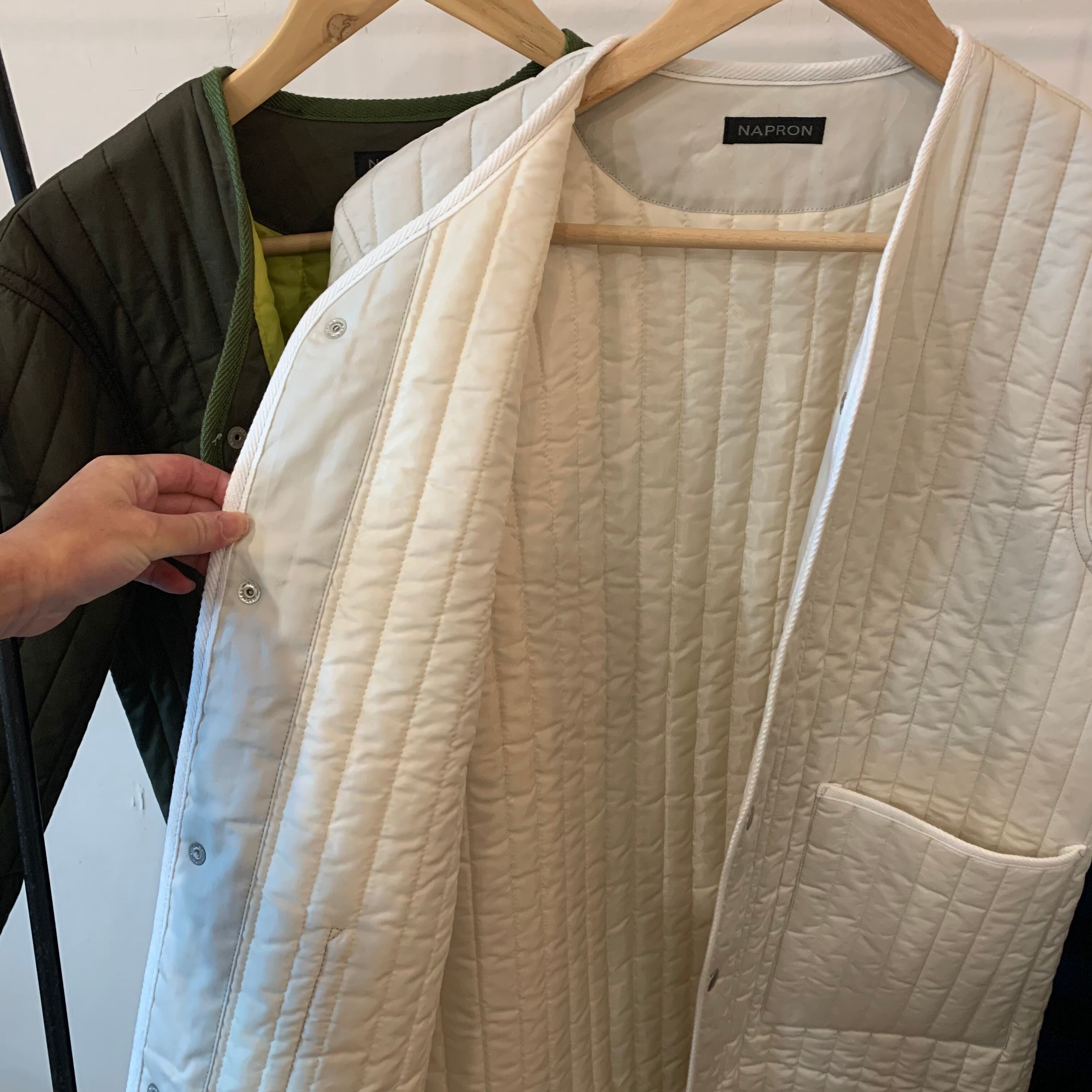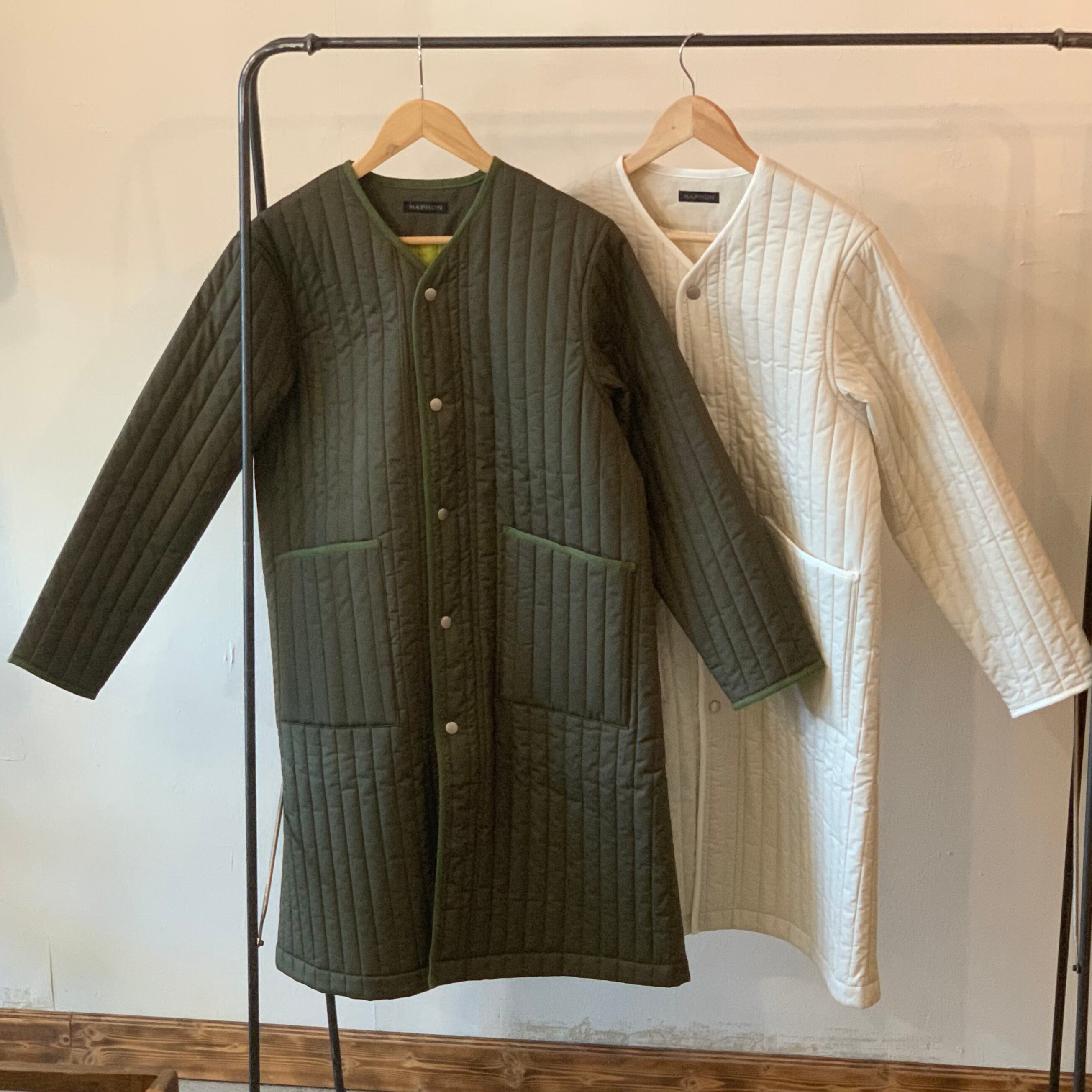 NAPRONオリジナルの縦キルトを使用したノーカラーコートです。