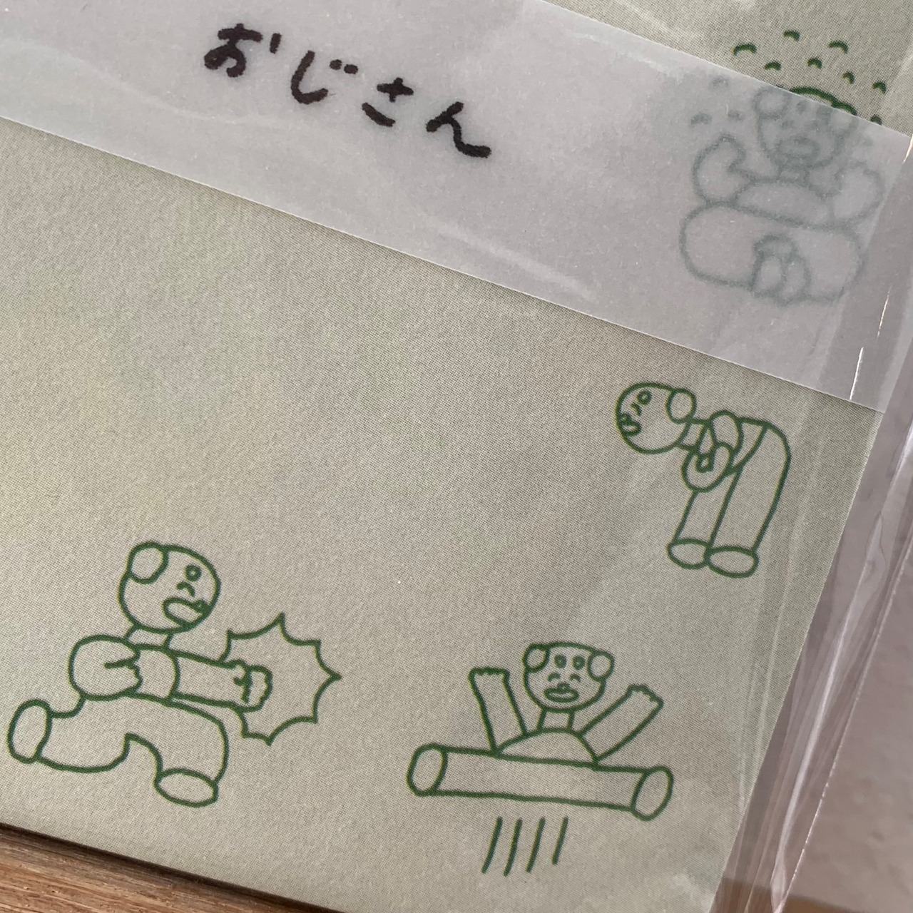色々なポーズをとったおじさんでぐるりと縁取ったメモパッドです。少しレトロな配色も特徴的。メモを取るのが楽しくなるデザインです。