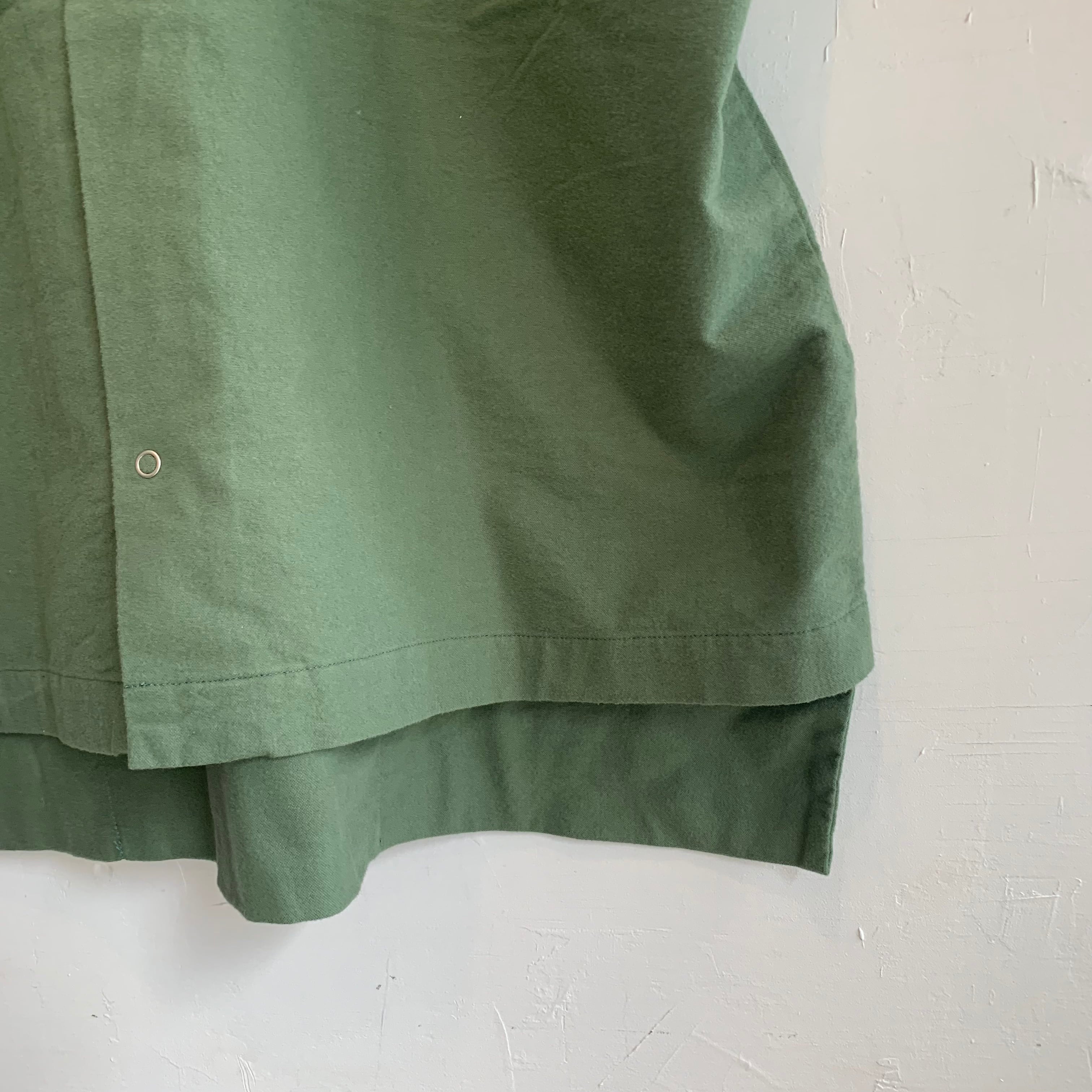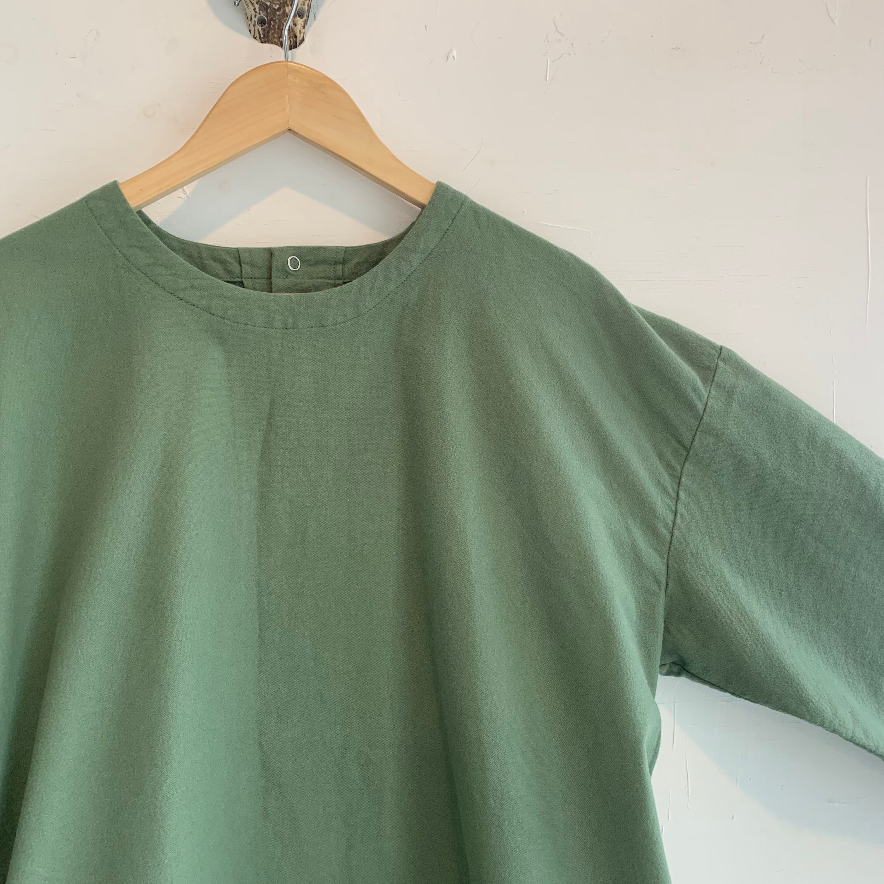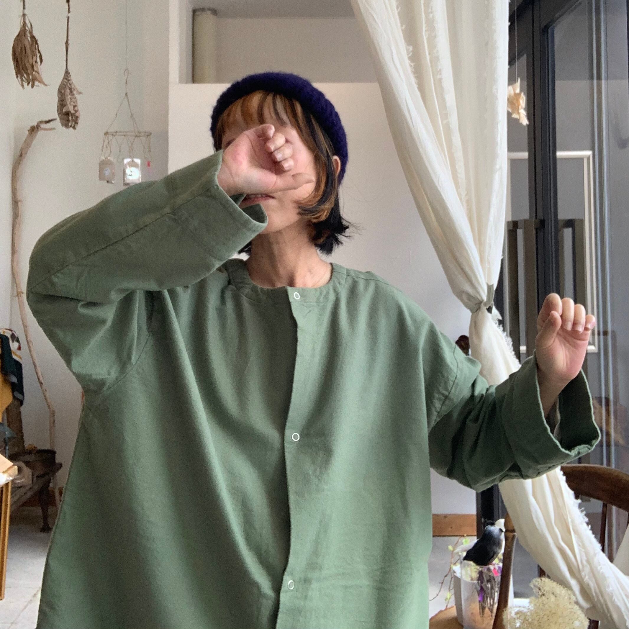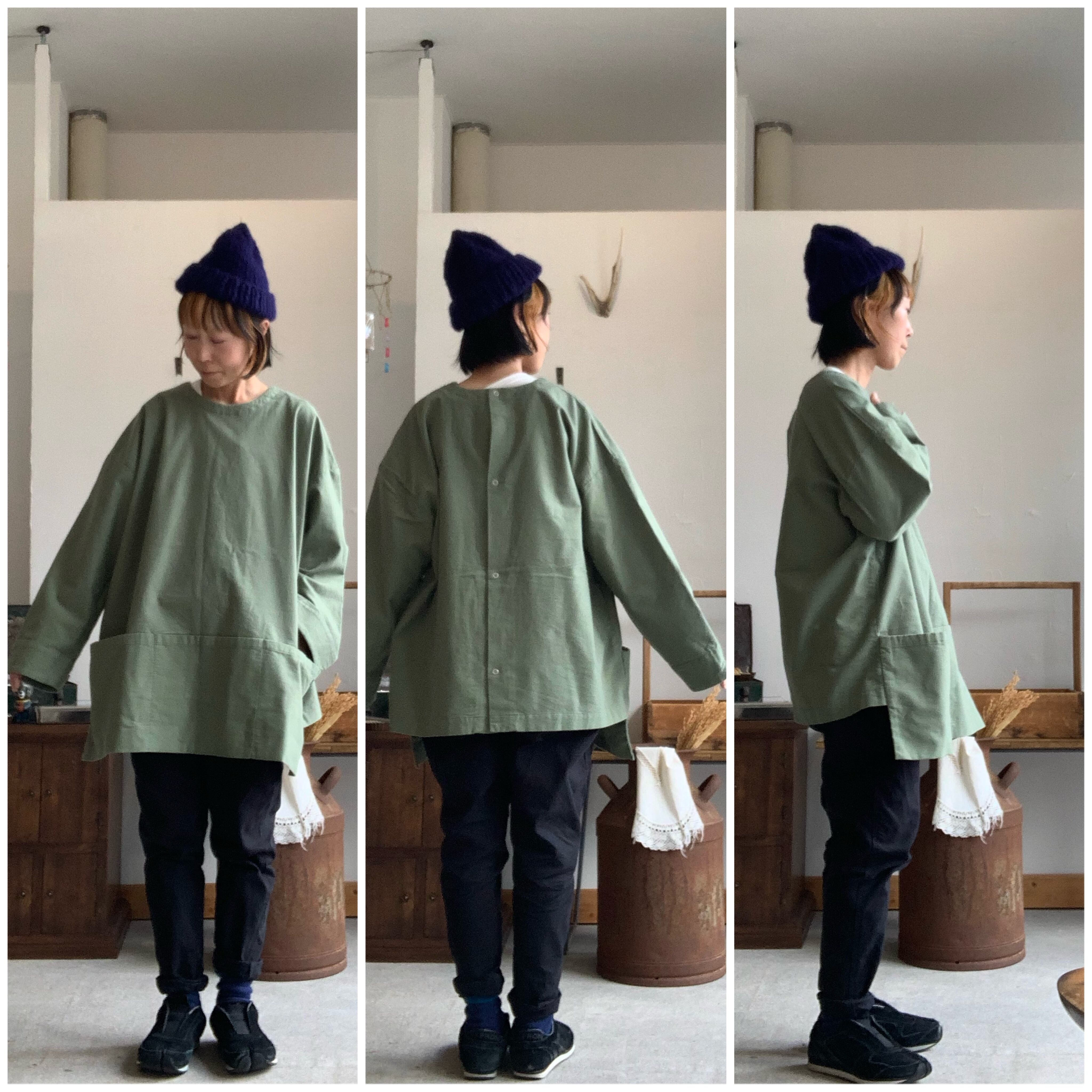 前後どちらでも着用可能なデザインとなっており、スモックエプロンとしても前開きシャツとしても使えます。