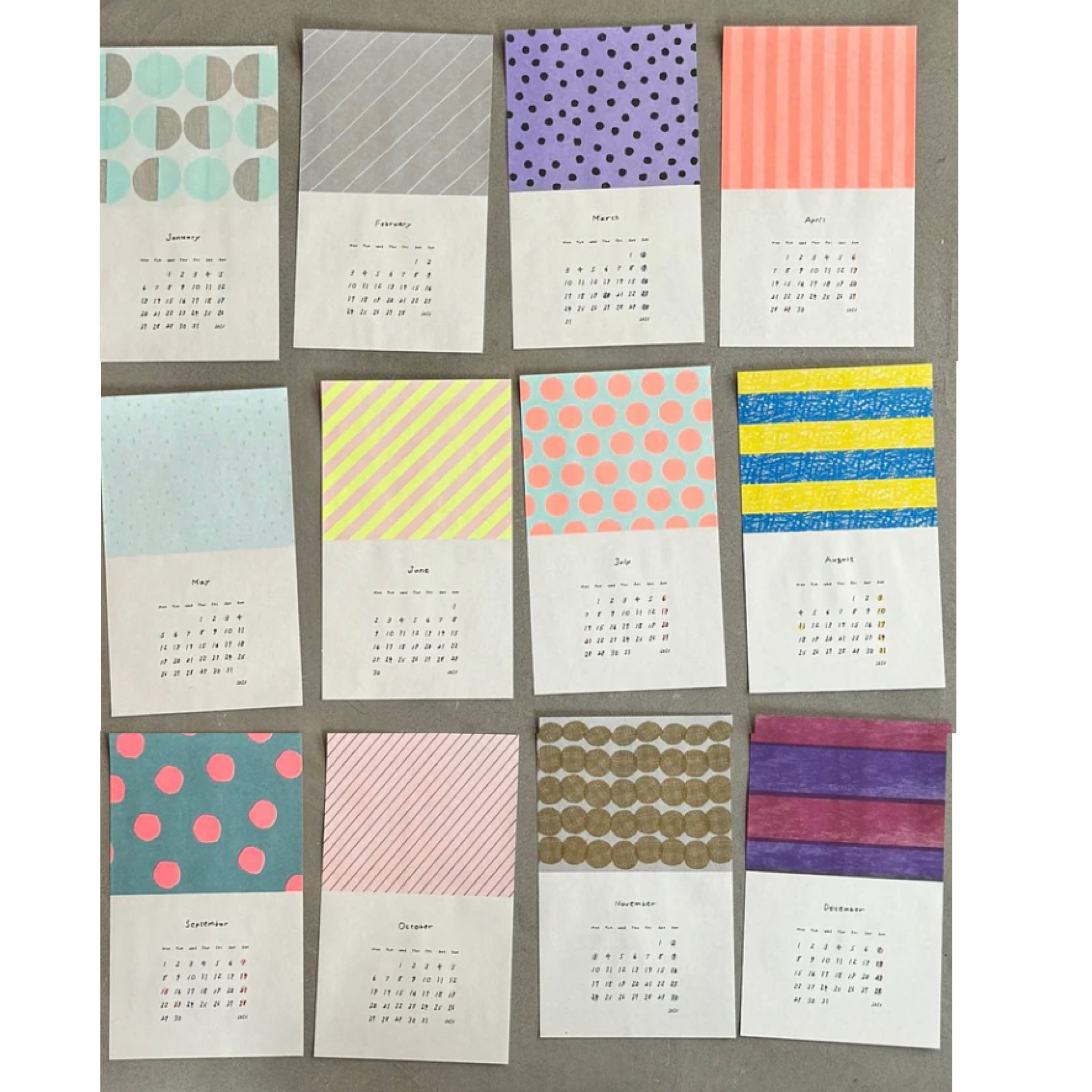 月ごとにミシン目で切り離してめくっていくタイプのカレンダーの水玉・縞々バージョンです。